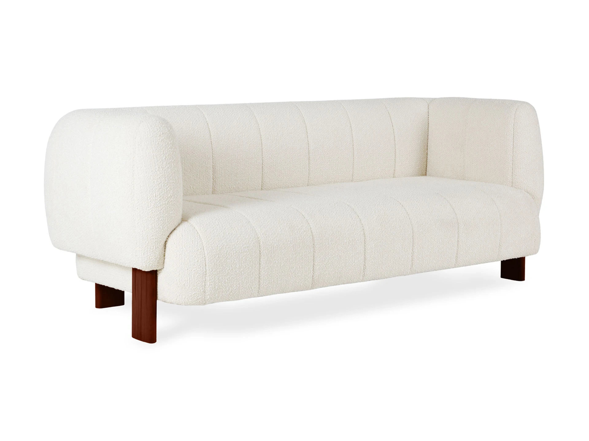 Диван Cassis — привлекательная минималистичная модель с объёмным силуэтом. Индивидуальность заключается в высоких подлокотниках, расположенных на одном уровне со спинкой. Такая конфигурация поддерживает большее ощущение комфорта, уединенности. Также поверхность дивана украшена отделочной вертикальной строчкой. «Стёжка» создает стильные геометрические акценты, добавляет плавности, округлых очертаний. И обеспечивает равномерное натяжение ткани по всему периметру. Это увеличивает износоустойчивость, срок службы материалов. Основательность и надежность кроется в каркасе из бруса хвойных пород. Сиденье состоит из пружин-змеек, нескольких слоев пенополиуретана и войлока. Материалы не деформируются, мгновенно восстанавливают форму. Обеспечат вам безмятежный отдых на идеальной поверхности. В меру упругой и мягкой. Опоры выполнены из бука. Упрощают уборку и поддерживают визуальную легкость конструкции. Диван Cassis легко адаптируется для различных пространств: как домашних, так и общественных. Вы можете выбрать цвет обивки и опор, создав индивидуальный дизайн, который гармонично впишется в ваш интерьер. Лицевой чехол изделия – простеганный, несъемный. Опоры выполнены из массива бука, представлены в трех цветах: светлый, черный, орех. Подпятники – пластиковые с фетровыми накладками.
