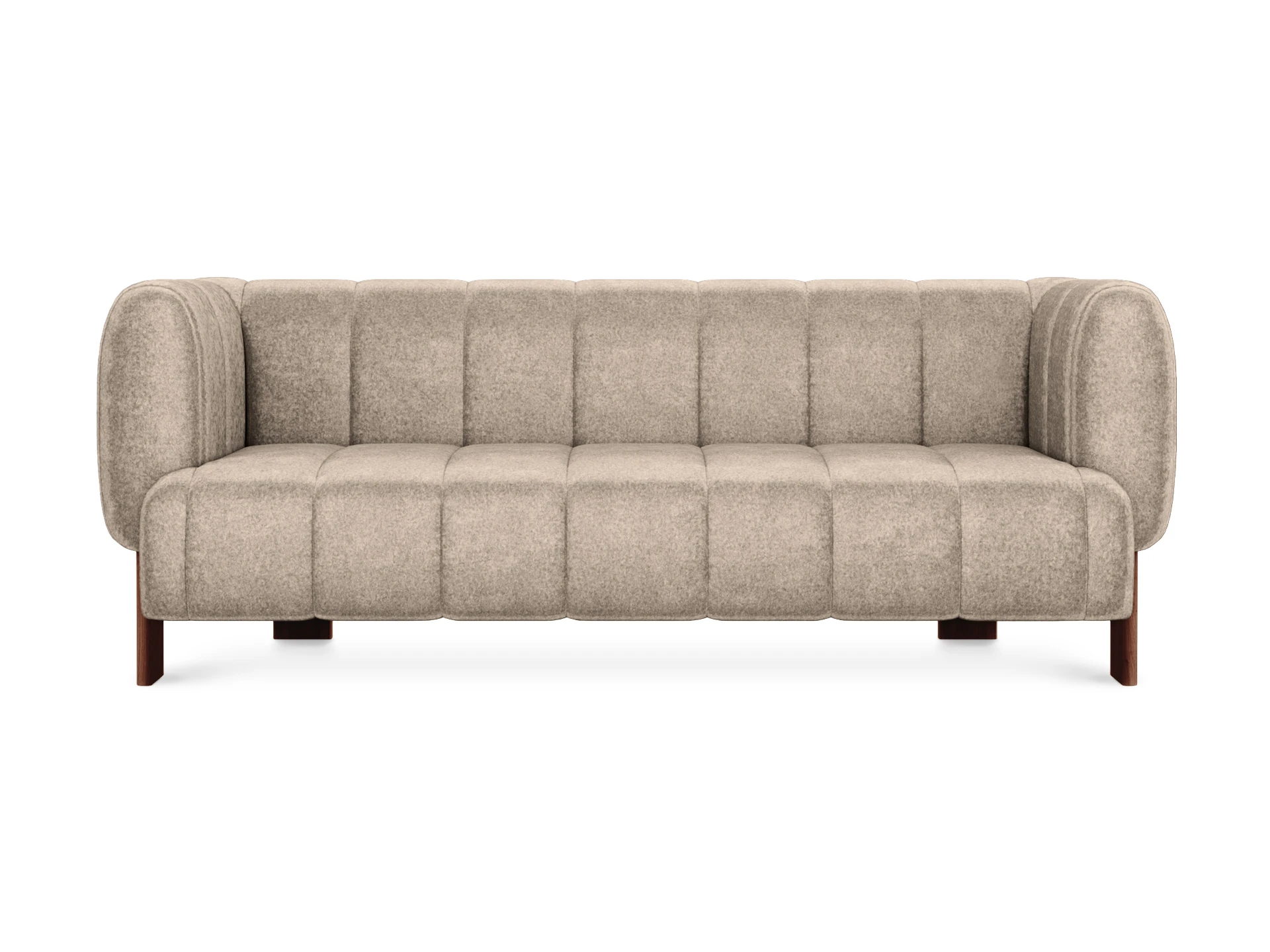 Диван Cassis — привлекательная минималистичная модель с объёмным силуэтом. Индивидуальность заключается в высоких подлокотниках, расположенных на одном уровне со спинкой. Такая конфигурация поддерживает большее ощущение комфорта, уединенности. Также поверхность дивана украшена отделочной вертикальной строчкой. «Стёжка» создает стильные геометрические акценты, добавляет плавности, округлых очертаний. И обеспечивает равномерное натяжение ткани по всему периметру. Это увеличивает износоустойчивость, срок службы материалов. Основательность и надежность кроется в каркасе из бруса хвойных пород. Сиденье состоит из пружин-змеек, нескольких слоев пенополиуретана и войлока. Материалы не деформируются, мгновенно восстанавливают форму. Обеспечат вам безмятежный отдых на идеальной поверхности. В меру упругой и мягкой. Опоры выполнены из бука. Упрощают уборку и поддерживают визуальную легкость конструкции. Диван Cassis легко адаптируется для различных пространств: как домашних, так и общественных. Вы можете выбрать цвет обивки и опор, создав индивидуальный дизайн, который гармонично впишется в ваш интерьер. Лицевой чехол изделия – простеганный, несъемный. Опоры выполнены из массива бука, представлены в трех цветах: светлый, черный, орех. Подпятники – пластиковые с фетровыми накладками.