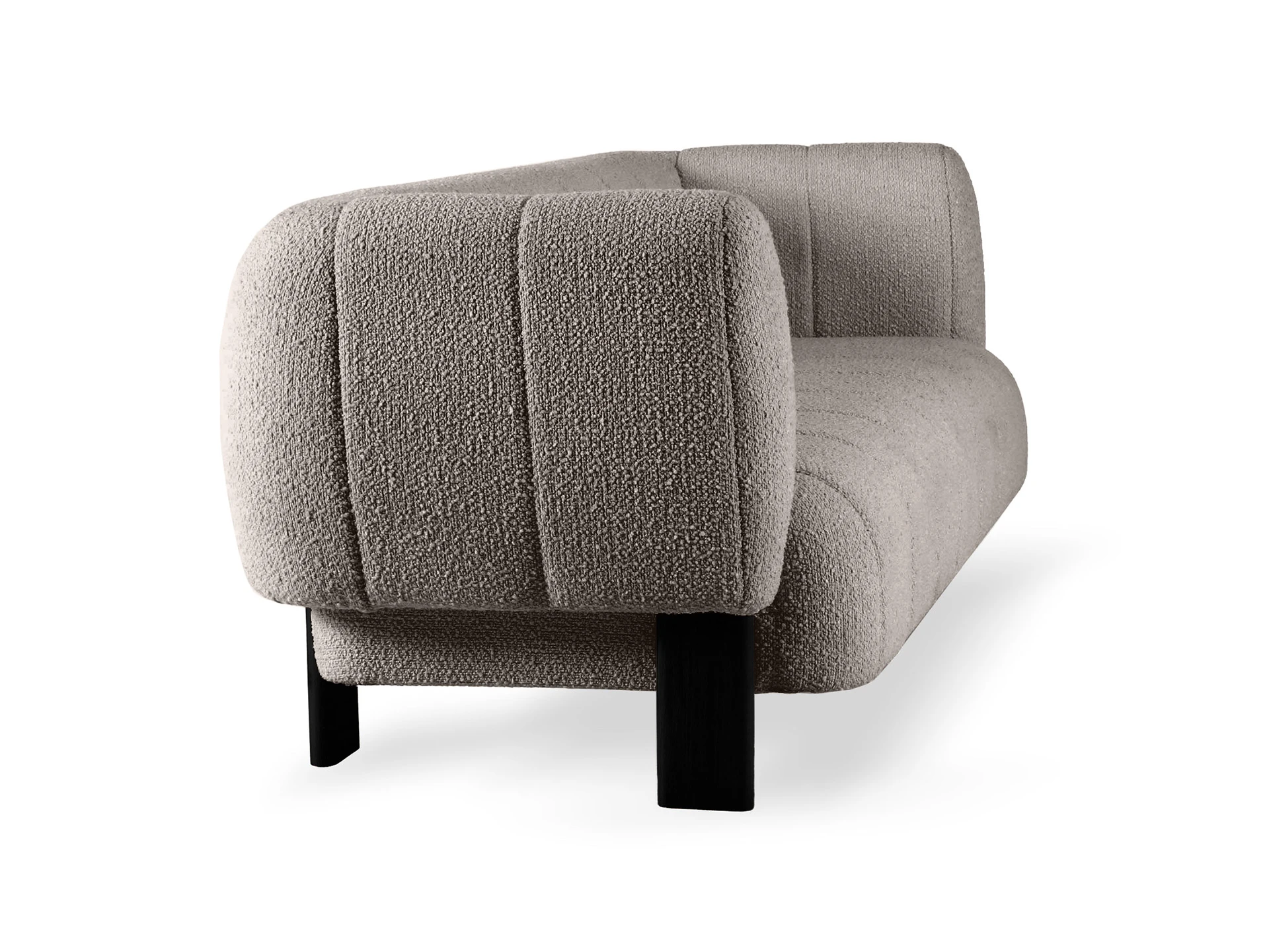 Диван Cassis — привлекательная минималистичная модель с объёмным силуэтом. Индивидуальность заключается в высоких подлокотниках, расположенных на одном уровне со спинкой. Такая конфигурация поддерживает большее ощущение комфорта, уединенности. Также поверхность дивана украшена отделочной вертикальной строчкой. «Стёжка» создает стильные геометрические акценты, добавляет плавности, округлых очертаний. И обеспечивает равномерное натяжение ткани по всему периметру. Это увеличивает износоустойчивость, срок службы материалов. Основательность и надежность кроется в каркасе из бруса хвойных пород. Сиденье состоит из пружин-змеек, нескольких слоев пенополиуретана и войлока. Материалы не деформируются, мгновенно восстанавливают форму. Обеспечат вам безмятежный отдых на идеальной поверхности. В меру упругой и мягкой. Опоры выполнены из бука. Упрощают уборку и поддерживают визуальную легкость конструкции. Диван Cassis легко адаптируется для различных пространств: как домашних, так и общественных. Вы можете выбрать цвет обивки и опор, создав индивидуальный дизайн, который гармонично впишется в ваш интерьер. Лицевой чехол изделия – простеганный, несъемный. Опоры выполнены из массива бука, представлены в трех цветах: светлый, черный, орех. Подпятники – пластиковые с фетровыми накладками.