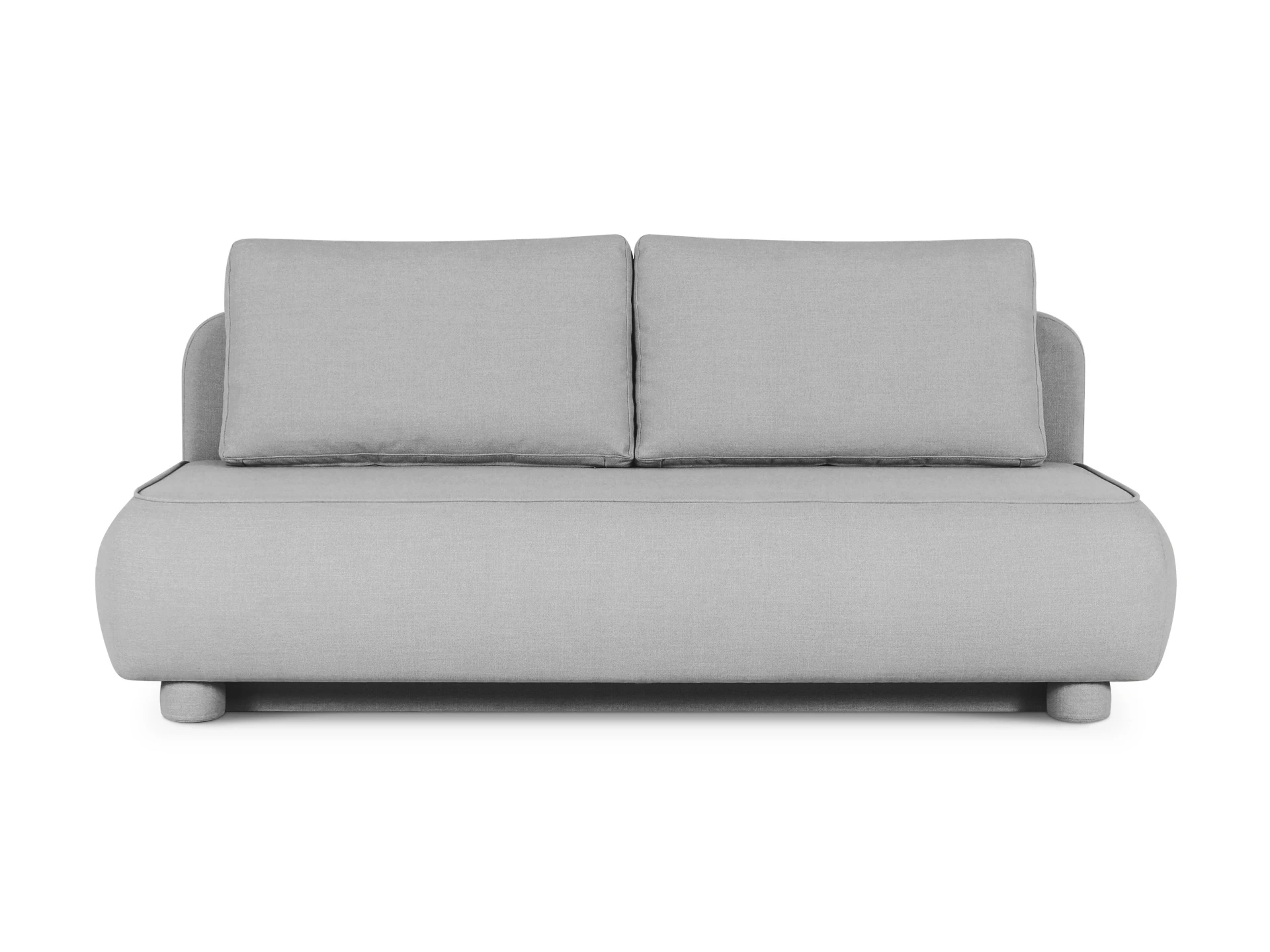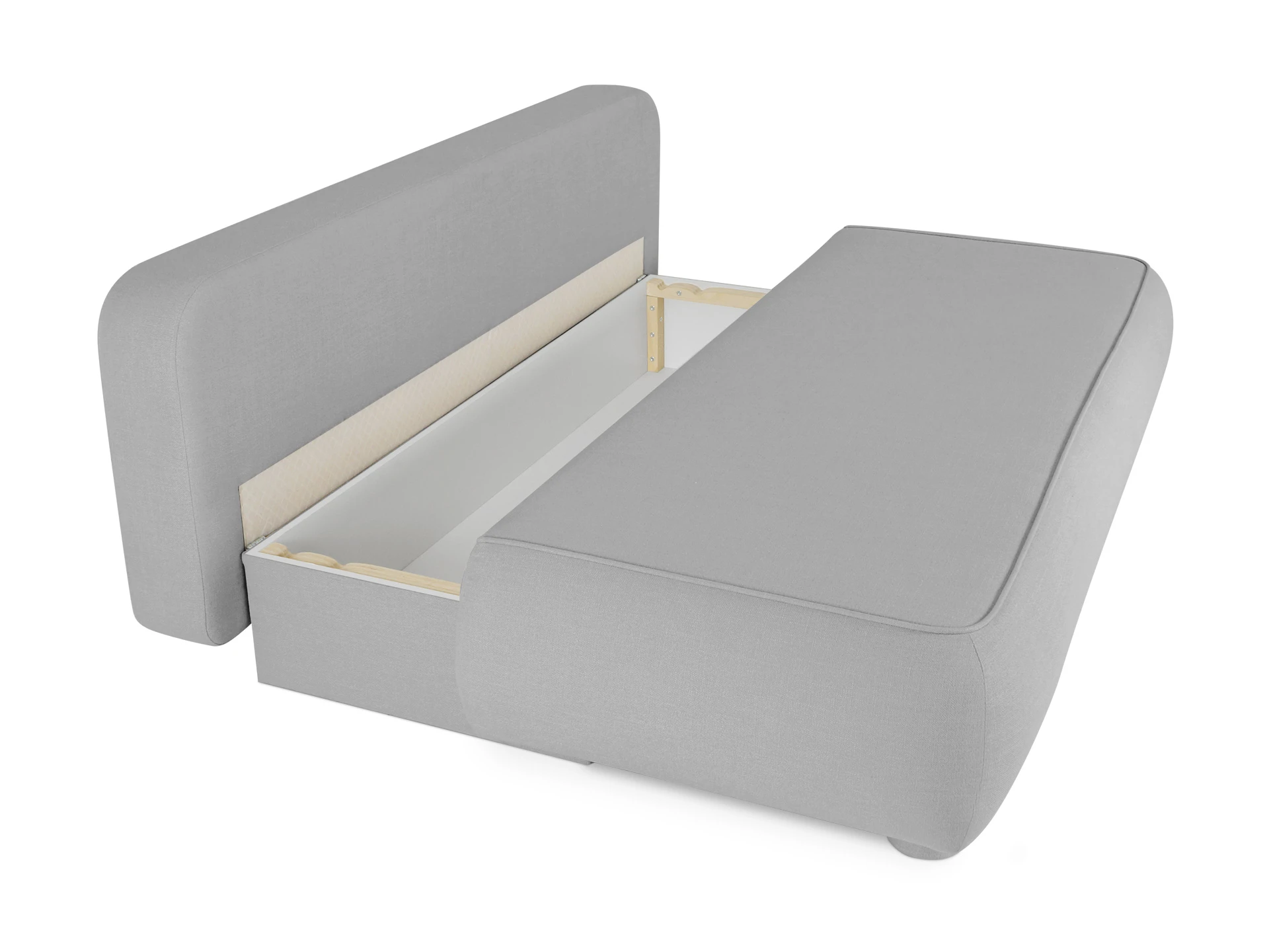 Диван комплектуется двумя спинными подушками в габаритных размерах: 850х500х200 мм. - 2 шт. Наполнитель подушек – синтетическое волокно «синтепух». Облицовочные чехлы дивана не съёмные. Олицовочные чехлы декоративных подушек - съемные на молнии. Внутренние чехлы декоративных подушек несъемные. На основание короба установлены подпятники с фетром на саморезе D 24 мм. Выкатная часть сидения опирается на декоративные, обтянутые тканью цилиндрические опоры h 100 мм., с установленными в них роликами. В диване используется механизм трансформации типа Еврокнижка. При раскладывании диван трансформируется в кровать с размером спального места 2060 х 1530 мм.