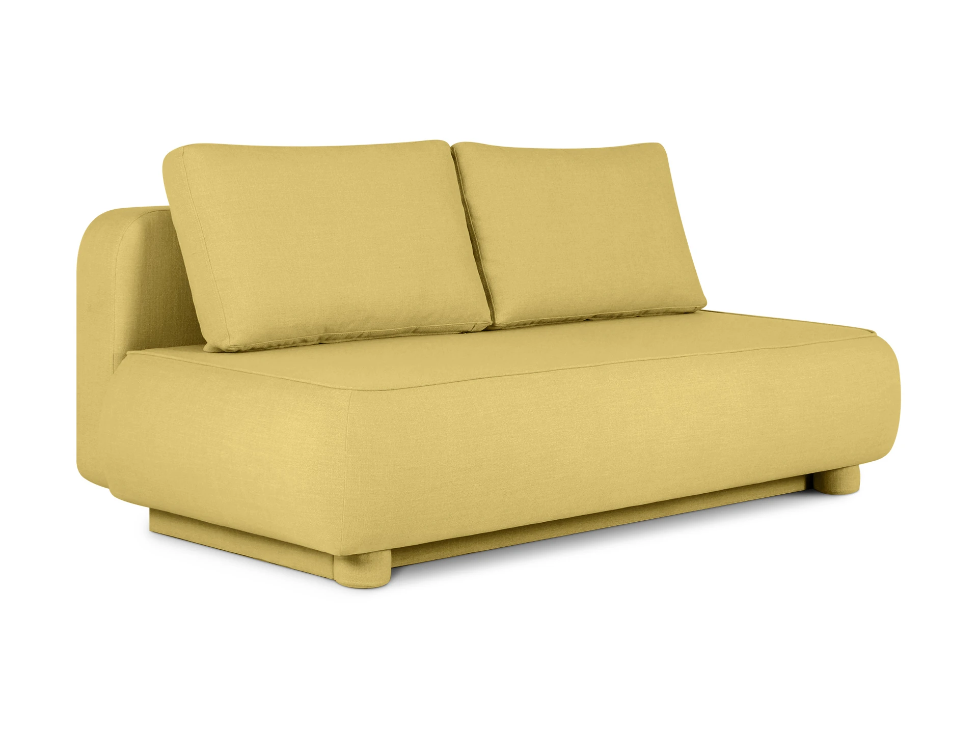 Диван комплектуется двумя спинными подушками в габаритных размерах: 850х500х200 мм. - 2 шт. Наполнитель подушек – синтетическое волокно «синтепух». Облицовочные чехлы дивана не съёмные. Олицовочные чехлы декоративных подушек - съемные на молнии. Внутренние чехлы декоративных подушек несъемные. На основание короба установлены подпятники с фетром на саморезе D 24 мм. Выкатная часть сидения опирается на декоративные, обтянутые тканью цилиндрические опоры h 100 мм., с установленными в них роликами. В диване используется механизм трансформации типа Еврокнижка. При раскладывании диван трансформируется в кровать с размером спального места 2060 х 1530 мм.