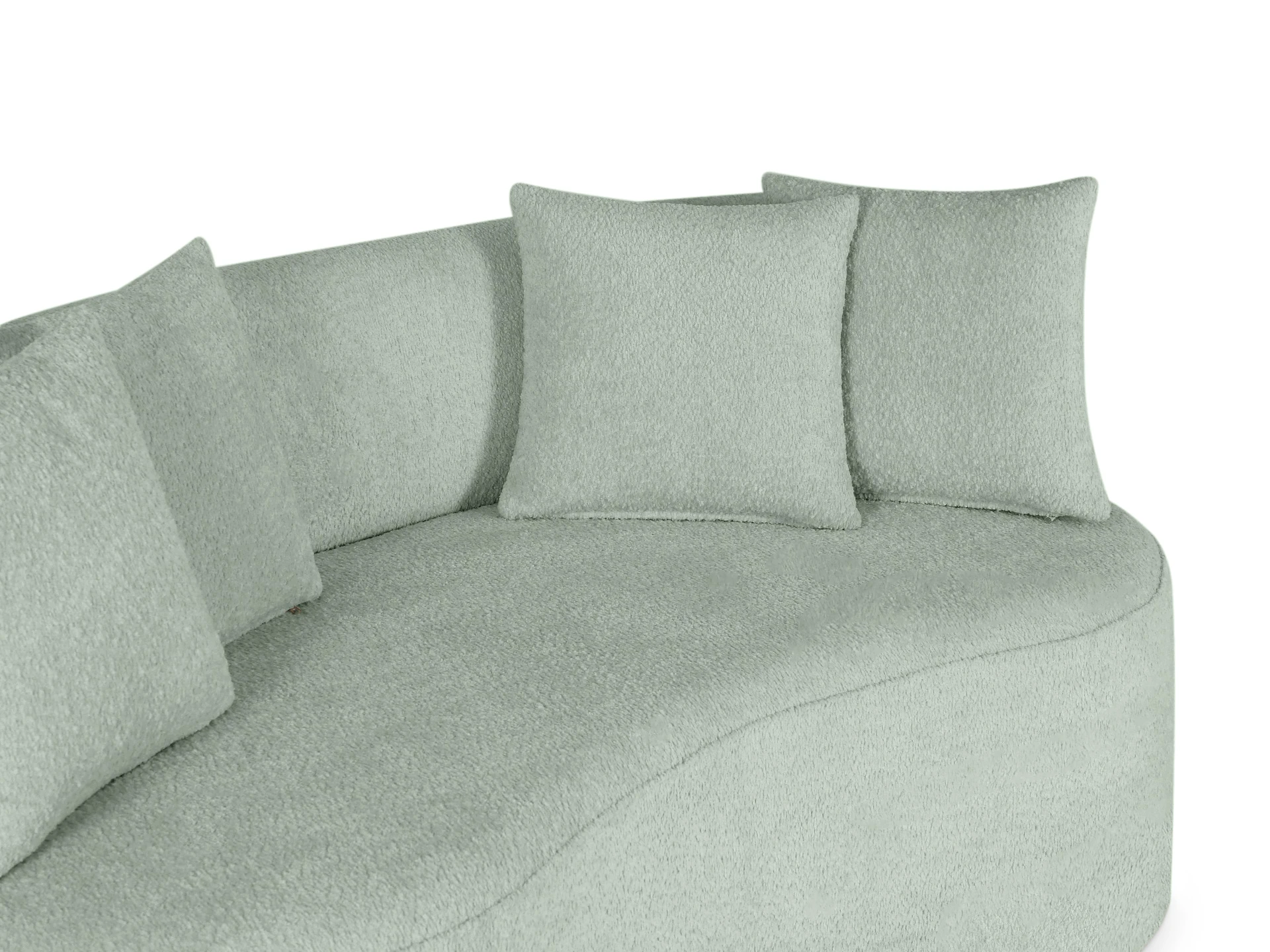 Каркас дивана состоит из деревянных брусков. Лицевой чехол дивана - несъемный. Лицевой чехол декоративных подушек – съемный. В основании дивана – четыре пластиковые опоры высотой 15 мм.