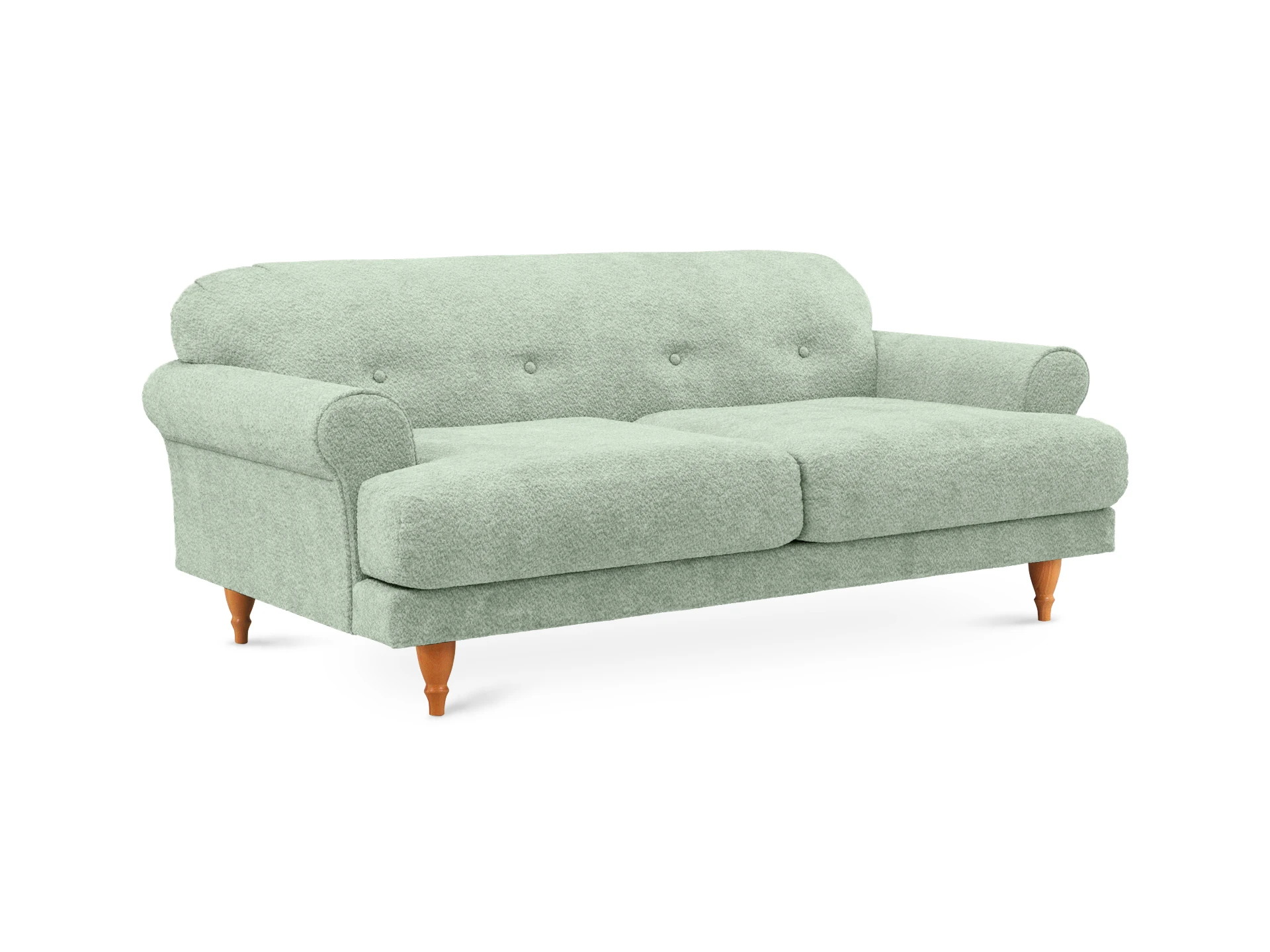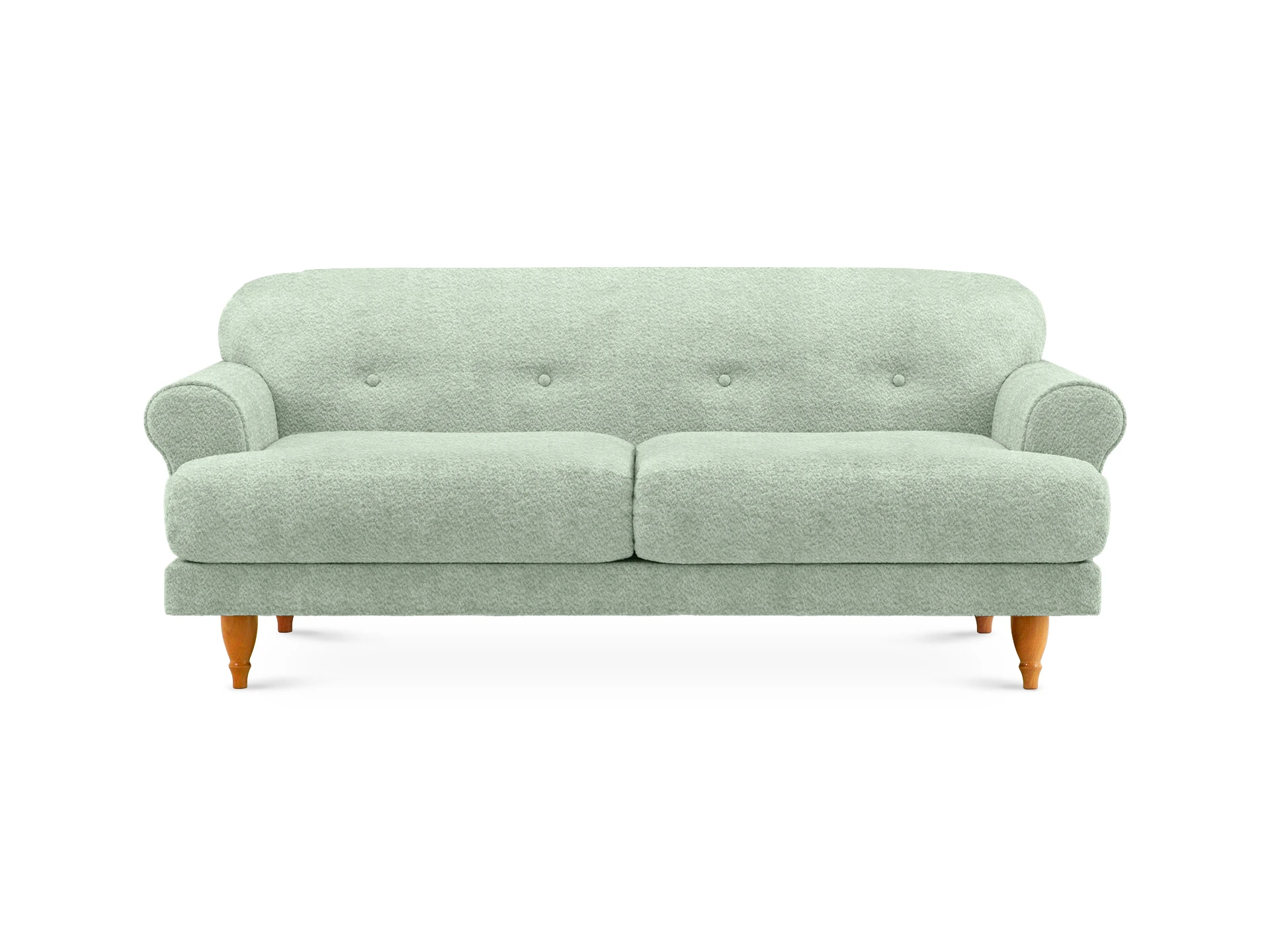 Трехместный диван Italia на ножках из натурального бука - модель классического европейского дизайна. Прямоугольное сиденье, образованное двумя подушками, обеспечивает комфортную посадку. Спинка с закругленными краями делает изделие гармоничным и плавным. Деревянные круглые ножки с фигурной обработкой создают ощущение невесомости и легкости, диван словно «парит» в пространстве. Невысокие подлокотники закруглены наружу, изюминку их формы по достоинству можно оценить при отдыхе лежа. Спинка украшена пуговицами стяжек – черта стилистики ретро.|Сочетание в каркасе деревянного бруса еловых пород с МДФ обеспечивает прочность и основательность. В меру мягкие, эластичные и износоустойчивые наполнители спинки и подушек сиденья – пенополиуретан и синтепон отвечают за качество вашего отдыха в любом положении. Широкий выбор материала обивки по цвету и фактуре. Italia – лаконичный диван с особенной эстетикой. Недаром он носит название страны, которая ассоциируется с искусством, культурой и утонченностью. В зависимости от стиля интерьера и декора диван Italia может выглядеть романтично, строго или изысканно.