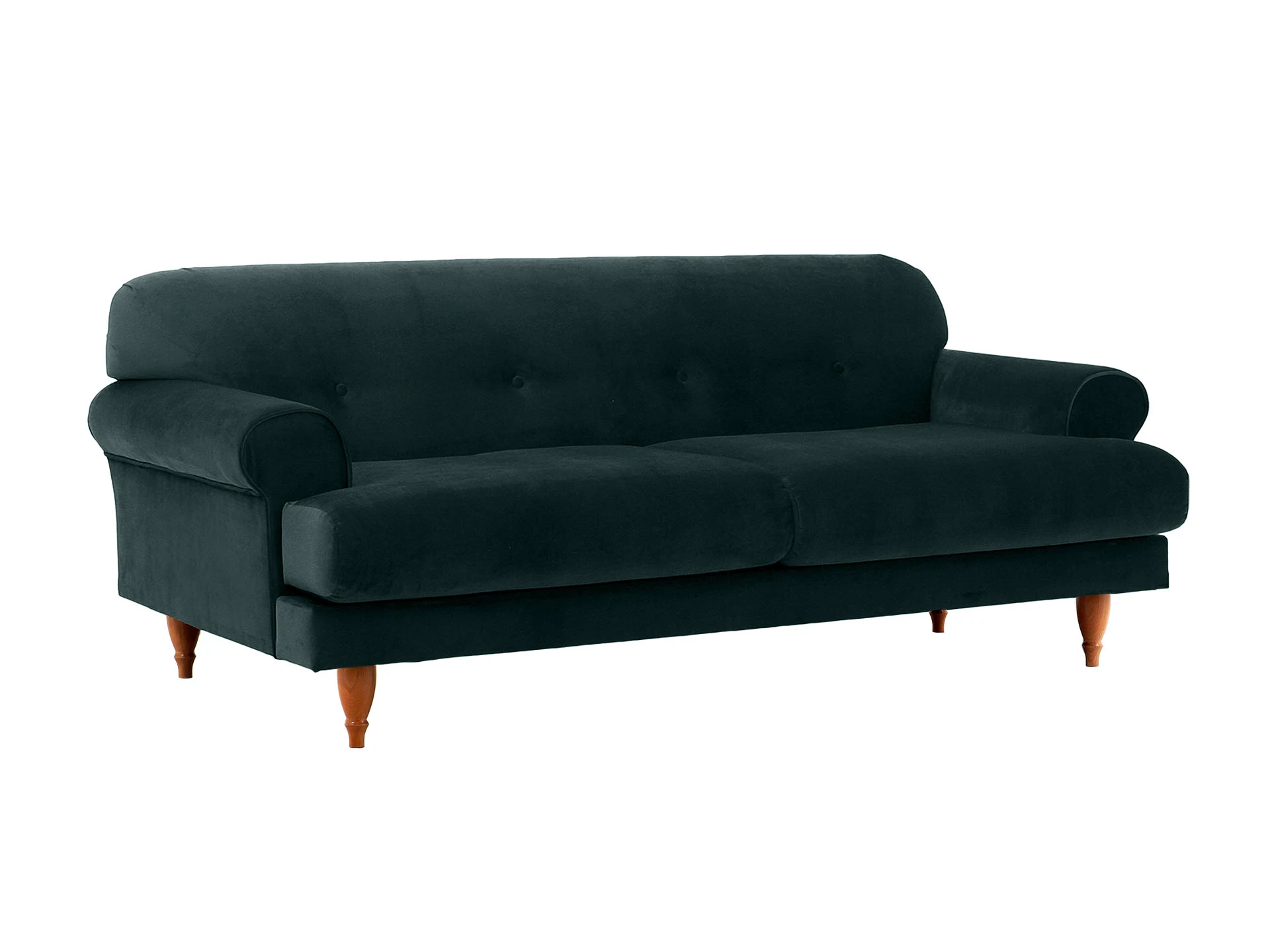 Трехместный диван Italia на ножках из натурального бука - модель классического европейского дизайна. Прямоугольное сиденье, образованное двумя подушками, обеспечивает комфортную посадку. Спинка с закругленными краями делает изделие гармоничным и плавным. Деревянные круглые ножки с фигурной обработкой создают ощущение невесомости и легкости, диван словно «парит» в пространстве. Невысокие подлокотники закруглены наружу, изюминку их формы по достоинству можно оценить при отдыхе лежа. Спинка украшена пуговицами стяжек – черта стилистики ретро.|Сочетание в каркасе деревянного бруса еловых пород с МДФ обеспечивает прочность и основательность. В меру мягкие, эластичные и износоустойчивые наполнители спинки и подушек сиденья – пенополиуретан и синтепон отвечают за качество вашего отдыха в любом положении. Широкий выбор материала обивки по цвету и фактуре. Italia – лаконичный диван с особенной эстетикой. Недаром он носит название страны, которая ассоциируется с искусством, культурой и утонченностью. В зависимости от стиля интерьера и декора диван Italia может выглядеть романтично, строго или изысканно.