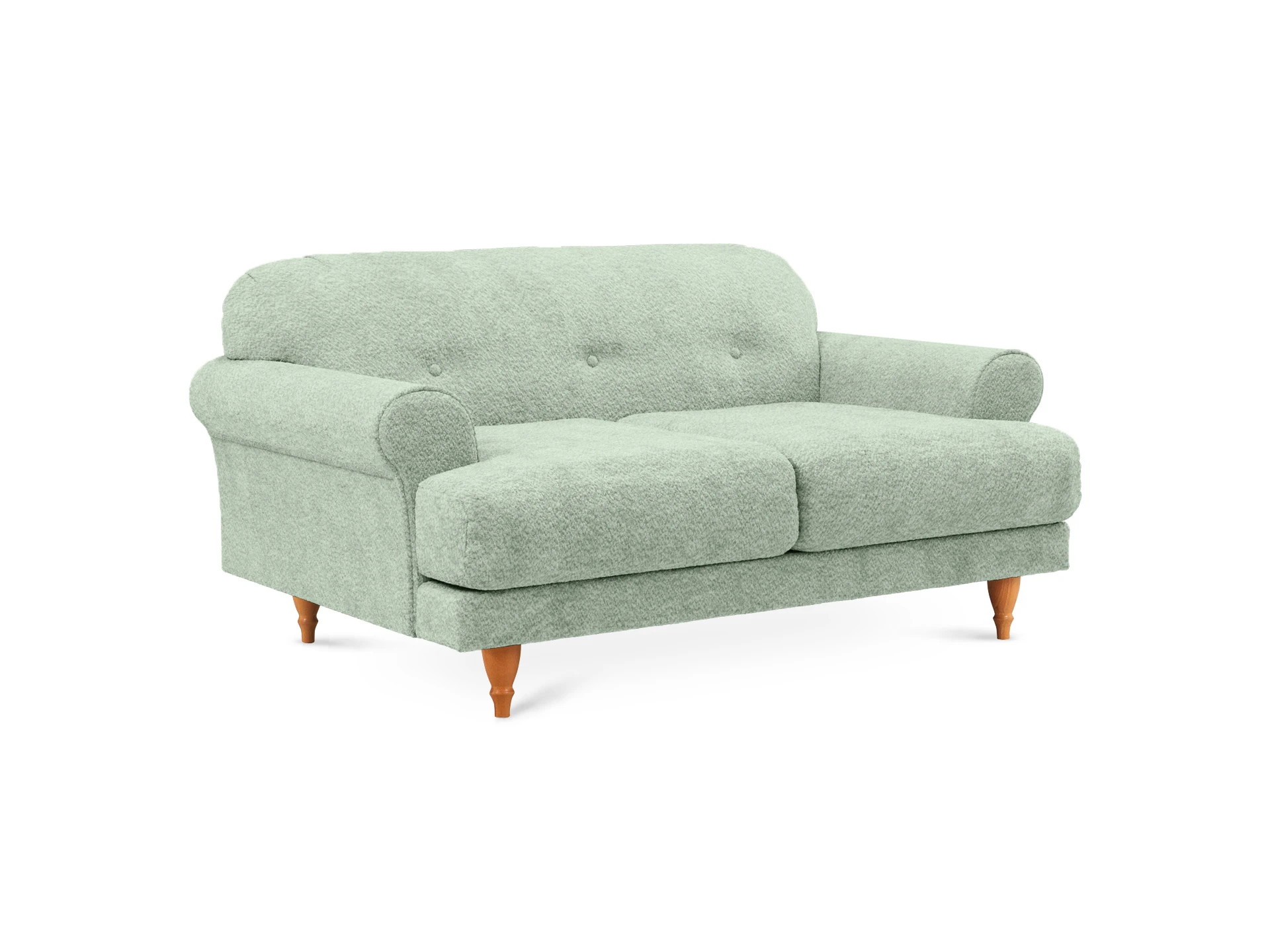 Двухместный диван Italia на деревянных ножках - модель классического европейского дизайна. Прямоугольное сиденье, образованное двумя подушками, обеспечивает комфортную посадку. Спинка с закругленными краями делает изделие гармоничным и плавным. Деревянные круглые ножки с фигурной обработкой создают ощущение невесомости и легкости, диван словно «парит» в пространстве. Невысокие подлокотники закруглены наружу, изюминку их формы по достоинству можно оценить при отдыхе лежа. Спинка украшена пуговицами стяжек – черта стилистики ретро.|Сочетание в каркасе деревянного бруса еловых пород с МДФ обеспечивает прочность и основательность. В меру мягкие, эластичные и износоустойчивые наполнители спинки и подушек сиденья – пенополиуретан и синтепон отвечают за качество вашего отдыха в любом положении. Широкий выбор материала обивки по цвету и фактуре. Italia – лаконичный диван с особенной эстетикой. Недаром он носит название страны, которая ассоциируется с искусством, культурой и утонченностью. В зависимости от стиля интерьера и декора диван Italia может выглядеть романтично, строго или изысканно.