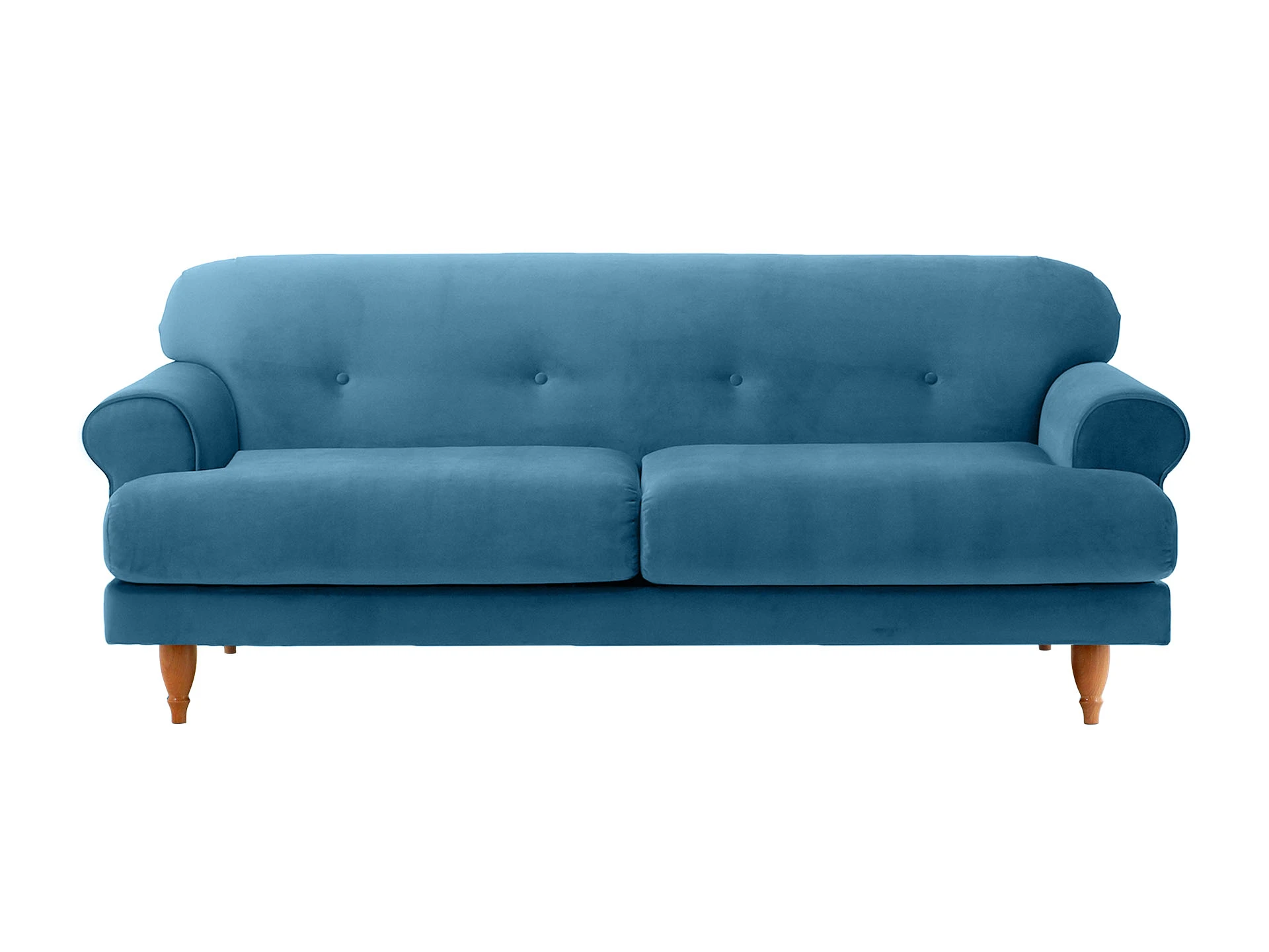 Трехместный диван Italia на ножках из натурального бука - модель классического европейского дизайна. Прямоугольное сиденье, образованное двумя подушками, обеспечивает комфортную посадку. Спинка с закругленными краями делает изделие гармоничным и плавным. Деревянные круглые ножки с фигурной обработкой создают ощущение невесомости и легкости, диван словно «парит» в пространстве. Невысокие подлокотники закруглены наружу, изюминку их формы по достоинству можно оценить при отдыхе лежа. Спинка украшена пуговицами стяжек – черта стилистики ретро.|Сочетание в каркасе деревянного бруса еловых пород с МДФ обеспечивает прочность и основательность. В меру мягкие, эластичные и износоустойчивые наполнители спинки и подушек сиденья – пенополиуретан и синтепон отвечают за качество вашего отдыха в любом положении. Широкий выбор материала обивки по цвету и фактуре. Italia – лаконичный диван с особенной эстетикой. Недаром он носит название страны, которая ассоциируется с искусством, культурой и утонченностью. В зависимости от стиля интерьера и декора диван Italia может выглядеть романтично, строго или изысканно.