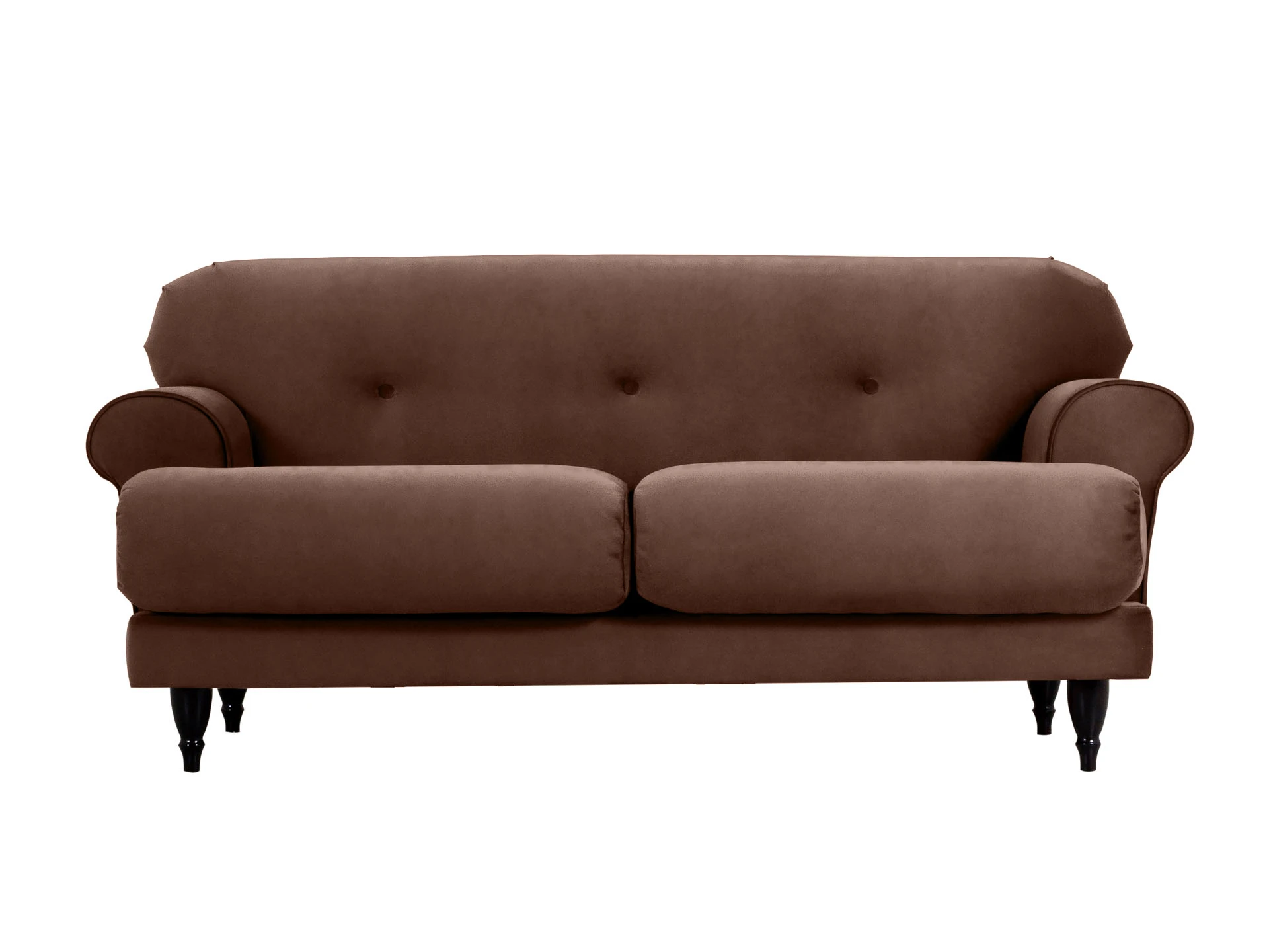 Двухместный диван Italia на деревянных ножках - модель классического европейского дизайна. Прямоугольное сиденье, образованное двумя подушками, обеспечивает комфортную посадку. Спинка с закругленными краями делает изделие гармоничным и плавным. Деревянные круглые ножки с фигурной обработкой создают ощущение невесомости и легкости, диван словно «парит» в пространстве. Невысокие подлокотники закруглены наружу, изюминку их формы по достоинству можно оценить при отдыхе лежа. Спинка украшена пуговицами стяжек – черта стилистики ретро.|Сочетание в каркасе деревянного бруса еловых пород с МДФ обеспечивает прочность и основательность. В меру мягкие, эластичные и износоустойчивые наполнители спинки и подушек сиденья – пенополиуретан и синтепон отвечают за качество вашего отдыха в любом положении. Широкий выбор материала обивки по цвету и фактуре. Italia – лаконичный диван с особенной эстетикой. Недаром он носит название страны, которая ассоциируется с искусством, культурой и утонченностью. В зависимости от стиля интерьера и декора диван Italia может выглядеть романтично, строго или изысканно.