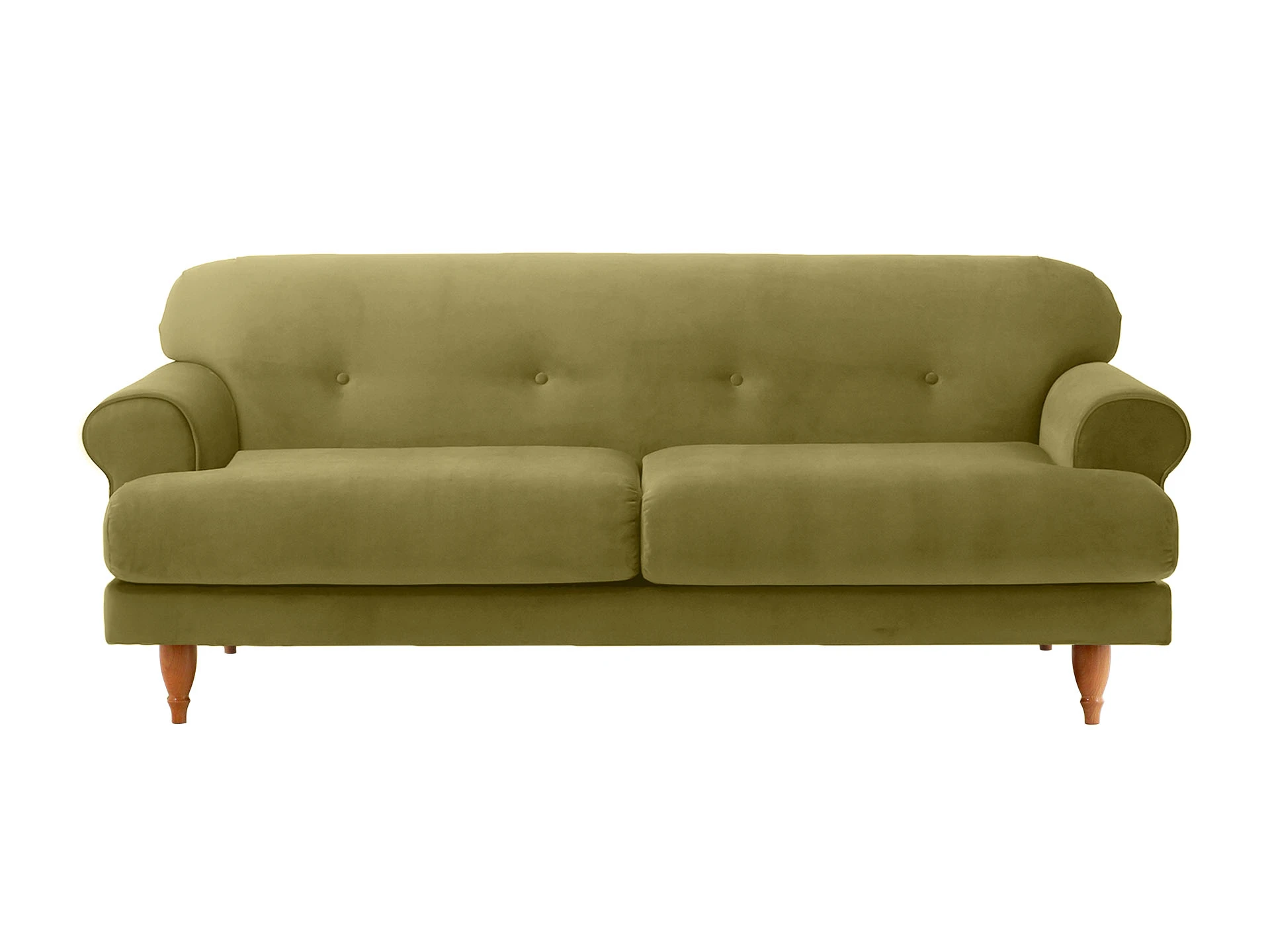 Трехместный диван Italia на ножках из натурального бука - модель классического европейского дизайна. Прямоугольное сиденье, образованное двумя подушками, обеспечивает комфортную посадку. Спинка с закругленными краями делает изделие гармоничным и плавным. Деревянные круглые ножки с фигурной обработкой создают ощущение невесомости и легкости, диван словно «парит» в пространстве. Невысокие подлокотники закруглены наружу, изюминку их формы по достоинству можно оценить при отдыхе лежа. Спинка украшена пуговицами стяжек – черта стилистики ретро.|Сочетание в каркасе деревянного бруса еловых пород с МДФ обеспечивает прочность и основательность. В меру мягкие, эластичные и износоустойчивые наполнители спинки и подушек сиденья – пенополиуретан и синтепон отвечают за качество вашего отдыха в любом положении. Широкий выбор материала обивки по цвету и фактуре. Italia – лаконичный диван с особенной эстетикой. Недаром он носит название страны, которая ассоциируется с искусством, культурой и утонченностью. В зависимости от стиля интерьера и декора диван Italia может выглядеть романтично, строго или изысканно.