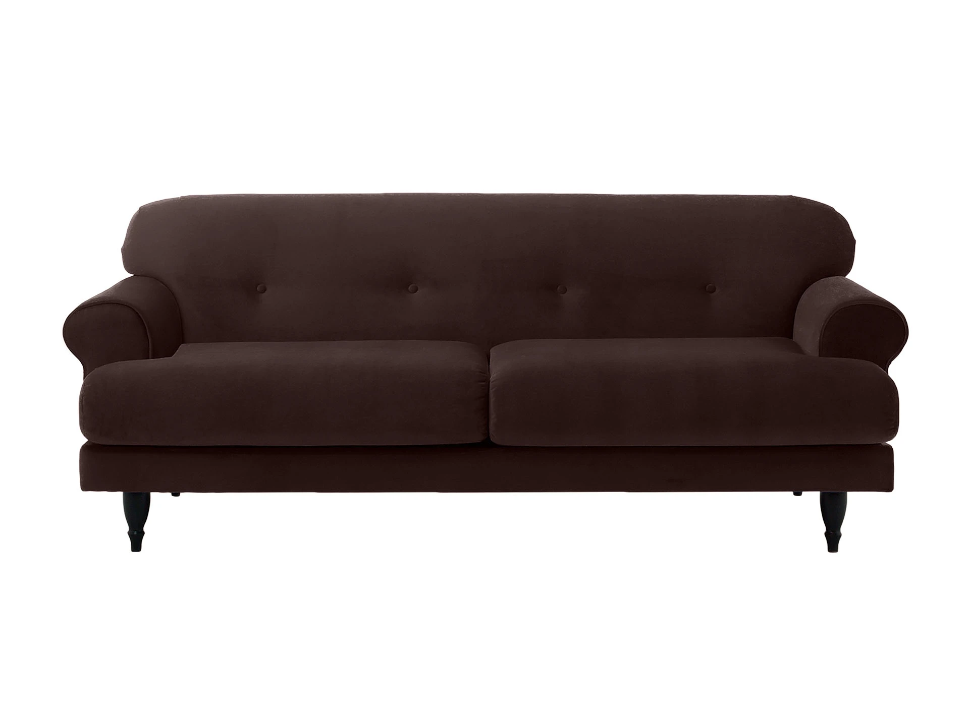 Трехместный диван Italia на деревянных ножках - модель классического европейского дизайна. Прямоугольное сиденье, образованное двумя подушками, обеспечивает комфортную посадку. Спинка с закругленными краями делает изделие гармоничным и плавным. Деревянные круглые ножки с фигурной обработкой создают ощущение невесомости и легкости, диван словно «парит» в пространстве. Невысокие подлокотники закруглены наружу, изюминку их формы по достоинству можно оценить при отдыхе лежа. Спинка украшена пуговицами стяжек – черта стилистики ретро.|Сочетание в каркасе деревянного бруса еловых пород с МДФ обеспечивает прочность и основательность. В меру мягкие, эластичные и износоустойчивые наполнители спинки и подушек сиденья – пенополиуретан и синтепон отвечают за качество вашего отдыха в любом положении. Широкий выбор материала обивки по цвету и фактуре. Italia – лаконичный диван с особенной эстетикой. Недаром он носит название страны, которая ассоциируется с искусством, культурой и утонченностью. В зависимости от стиля интерьера и декора диван Italia может выглядеть романтично, строго или изысканно.