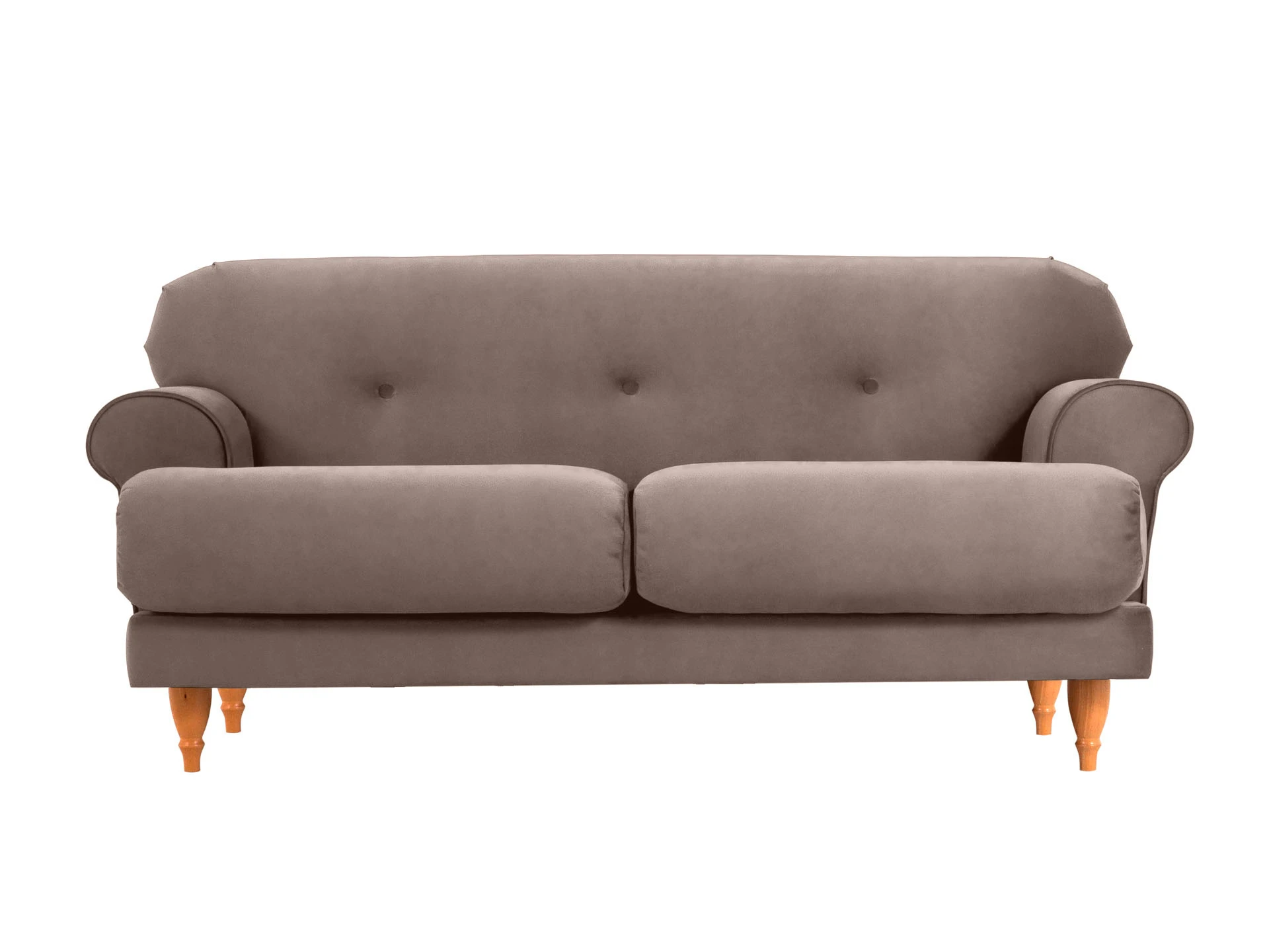 Двухместный диван Italia на деревянных ножках - модель классического европейского дизайна. Прямоугольное сиденье, образованное двумя подушками, обеспечивает комфортную посадку. Спинка с закругленными краями делает изделие гармоничным и плавным. Деревянные круглые ножки с фигурной обработкой создают ощущение невесомости и легкости, диван словно «парит» в пространстве. Невысокие подлокотники закруглены наружу, изюминку их формы по достоинству можно оценить при отдыхе лежа. Спинка украшена пуговицами стяжек – черта стилистики ретро.|Сочетание в каркасе деревянного бруса еловых пород с МДФ обеспечивает прочность и основательность. В меру мягкие, эластичные и износоустойчивые наполнители спинки и подушек сиденья – пенополиуретан и синтепон отвечают за качество вашего отдыха в любом положении. Широкий выбор материала обивки по цвету и фактуре. Italia – лаконичный диван с особенной эстетикой. Недаром он носит название страны, которая ассоциируется с искусством, культурой и утонченностью. В зависимости от стиля интерьера и декора диван Italia может выглядеть романтично, строго или изысканно.