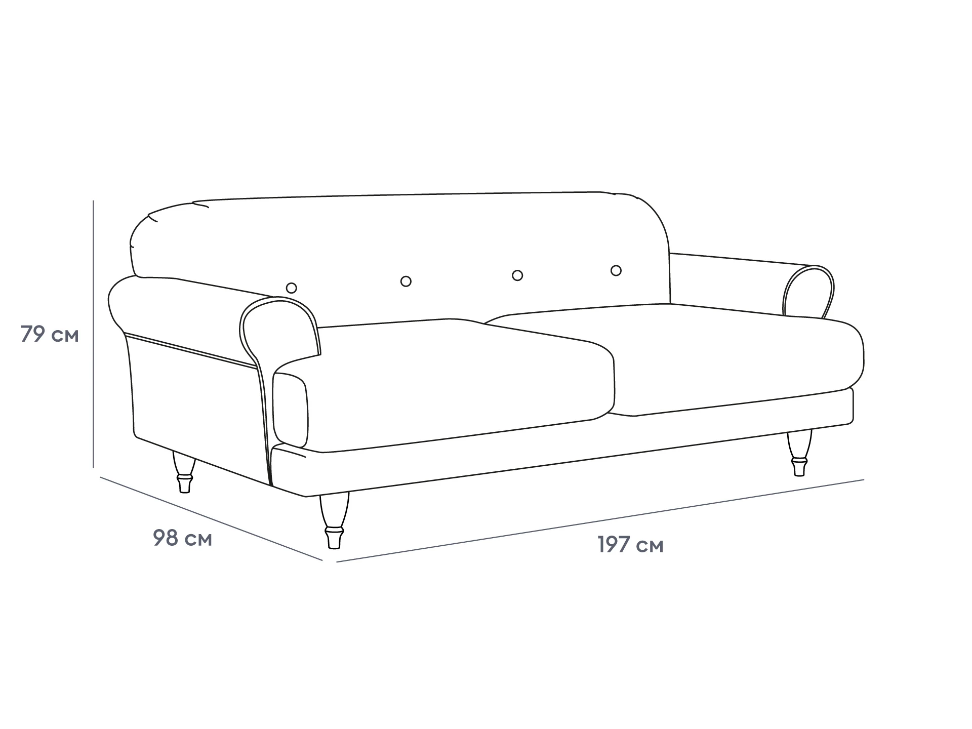 Трехместный диван Italia на деревянных ножках - модель классического европейского дизайна. Прямоугольное сиденье, образованное двумя подушками, обеспечивает комфортную посадку. Спинка с закругленными краями делает изделие гармоничным и плавным. Деревянные круглые ножки с фигурной обработкой создают ощущение невесомости и легкости, диван словно «парит» в пространстве. Невысокие подлокотники закруглены наружу, изюминку их формы по достоинству можно оценить при отдыхе лежа. Спинка украшена пуговицами стяжек – черта стилистики ретро.|Сочетание в каркасе деревянного бруса еловых пород с МДФ обеспечивает прочность и основательность. В меру мягкие, эластичные и износоустойчивые наполнители спинки и подушек сиденья – пенополиуретан и синтепон отвечают за качество вашего отдыха в любом положении. Широкий выбор материала обивки по цвету и фактуре. Italia – лаконичный диван с особенной эстетикой. Недаром он носит название страны, которая ассоциируется с искусством, культурой и утонченностью. В зависимости от стиля интерьера и декора диван Italia может выглядеть романтично, строго или изысканно.
