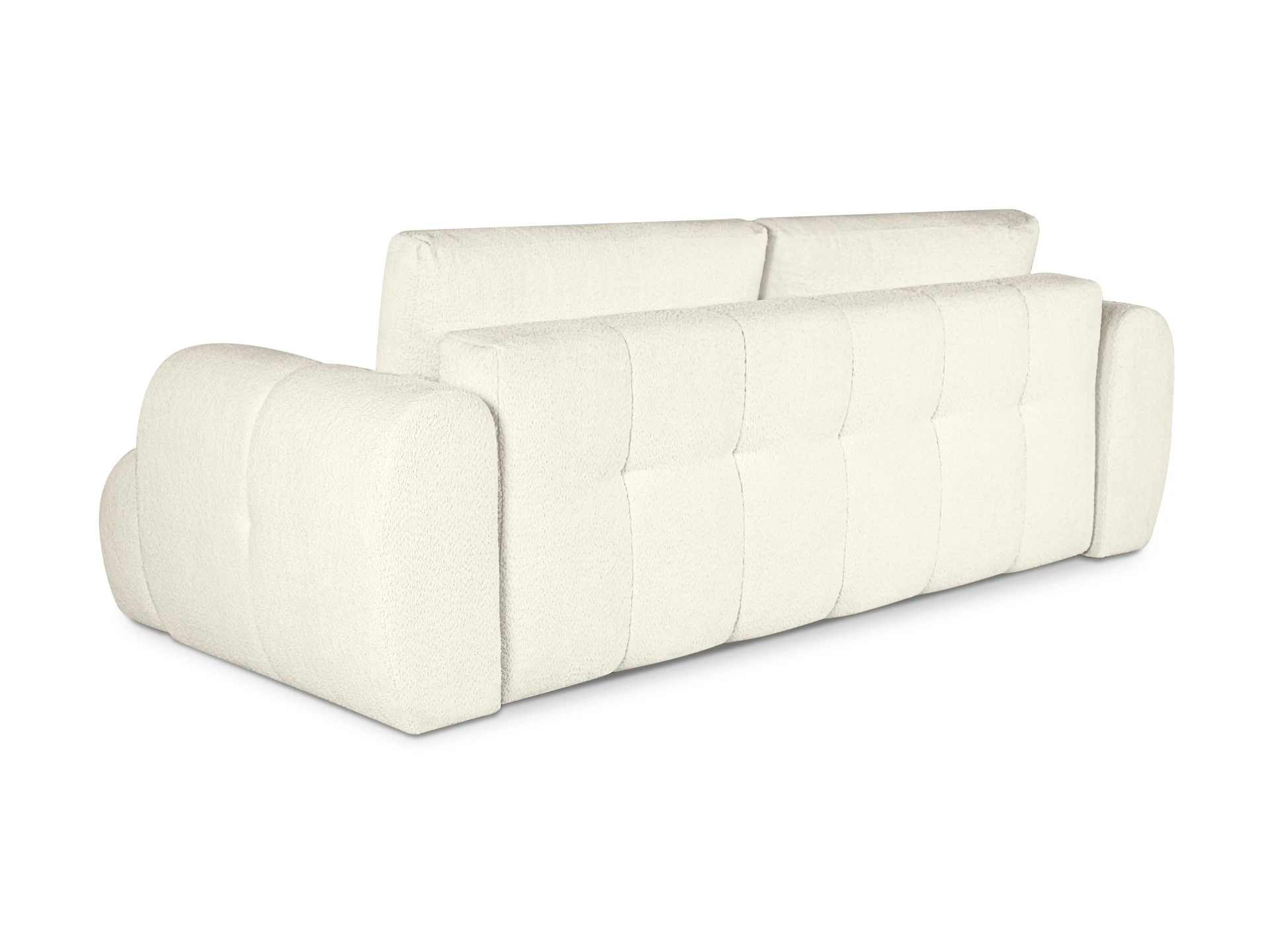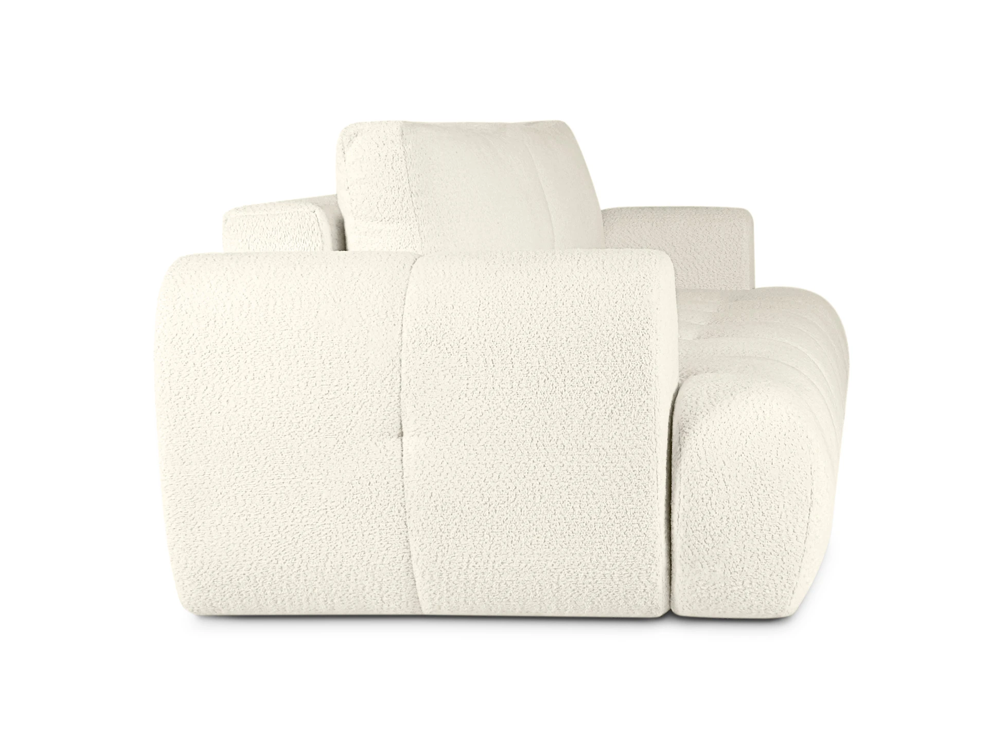 Диван Monza — модель, сочетающая лаконичные прямые линии с эргономичными округлыми формами. Конструкция обеспечивает баланс строгой геометрии и визуальной мягкости, что позволяет интегрировать диван как в нейтральные, так и в акцентные интерьерные решения. Декоративная строчка по периметру сиденья, подлокотников и спинки подчеркивает объем и добавляет графичности силуэту. Конструктив и материалы: • Каркас и основание: Мягкий каркасный диван. Корпус установлен на пластиковые опоры высотой 50 мм. • Механизм трансформации: Тип «Еврокнижка». Принцип работы: сиденье выкатывается вперед, спинка опускается в освободившееся пространство. В разложенном виде формируется спальное место размером 2000 x 1690 мм. • Элементы: В комплектацию входят: выкатное сиденье, спинка, короб, два подлокотника, две большие спинные подушки. Подушки спинки (декоративные/опорные): • Габариты: 980 x 470 x 250 мм (2 шт.). • Наполнитель: Полиэфирные шарики (синтепух). • Обивка: Облицовочные чехлы — съемные, на молнии. Внутренние чехлы — несъемные. Функциональность: Диван адаптирован для ежедневного использования в качестве спального места. Механизм трансформации обеспечивает быстрое переключение между режимами «диван» и «кровать». Благодаря универсальному дизайну и широкой цветовой палитре обивки (включая базовые оттенки: белый, бежевый, серый; и акцентные: зеленый, шоколадный, оранжевый), модель подходит для гостиных и просторных комнат общего назначения.