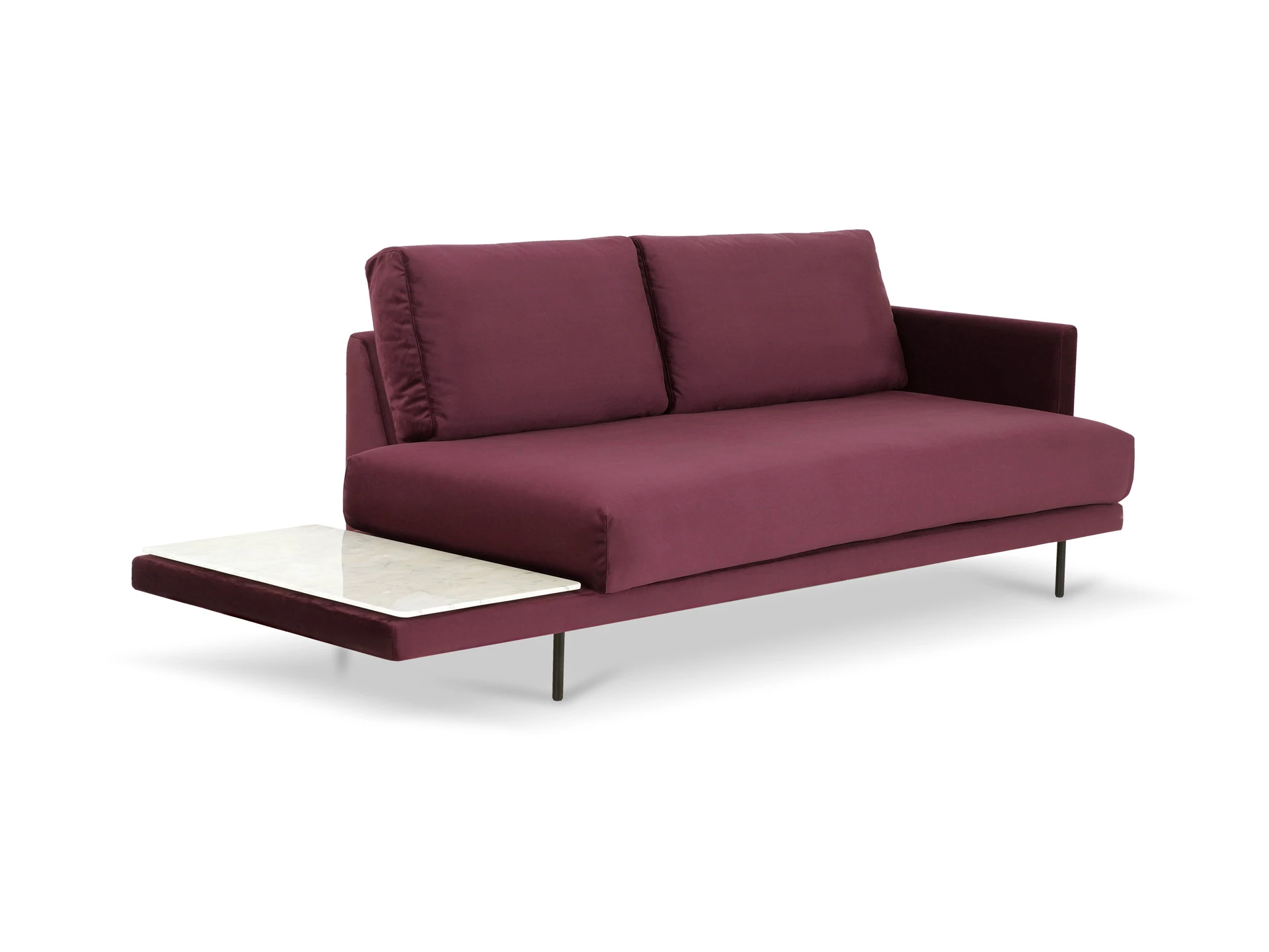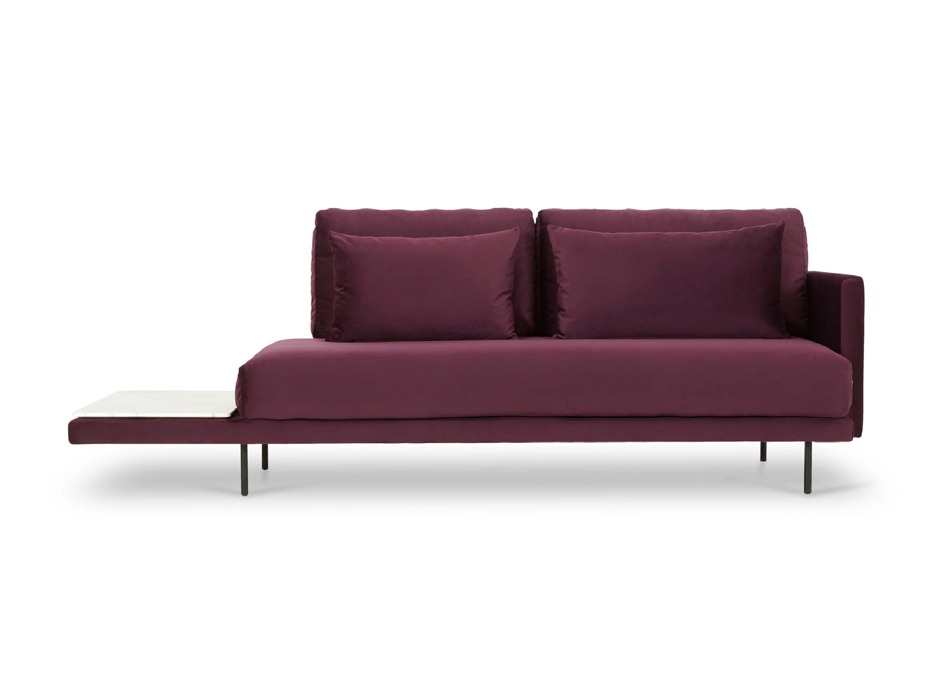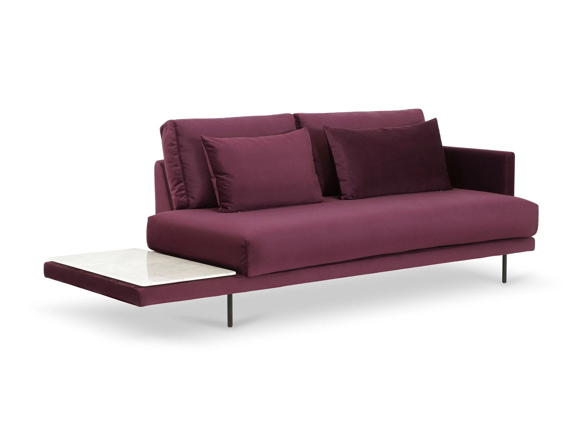 Каркас изделий состоит из деревянных брусков (хвойных пород), соединенных с помощью мебельных скоб и клея, березовой фанеры марки ФК (класс эмиссии формальдегида фанеры - Е1). На рамку каркаса сидения установлен ряд плоских пружин (тип – «змейка»), поверх пружин проложен слой войлока, сверху войлок закрыт лицевым чехлом из ткани с логотипом. Состав подушки сидения: настил из войлока, настил из двух слоев пенополиуретана (поролон марки Memory Foam и супермягкий), холлофайбер. Внутренний чехол выполнен из периотека на текстильной основе. Подушки фиксируются к основанию с помощью контактной ленты. Состав подушки спинки: синтепух в чехле из спанбонда. Лицевой чехол имеет внутренний слой из периотека на текстильной основе. Лицевой чехол подушек сидения и спинки – съемный. Лицевой чехол каркаса - несъемный, крепится к каркасу при помощи мебельных скоб. В основании изделий – металлические опоры высотой 160 мм, с пластиковыми подпятниками, окрашены черной матовой эмалью. Столешница изготовлена из полированного натурального камня (мрамор), толщиной 20мм. Подушки входят в стоимость.