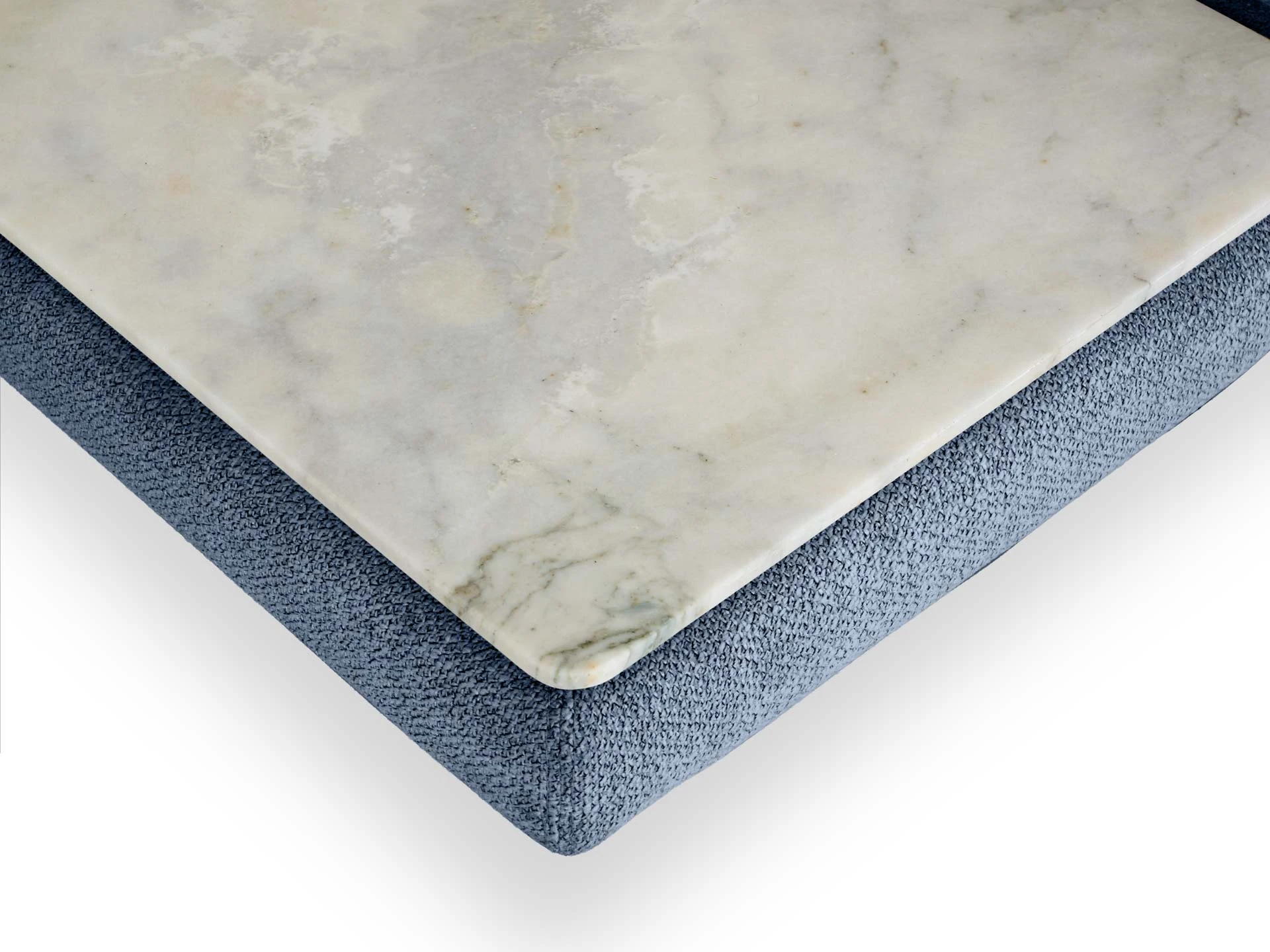 Каркас изделий состоит из деревянных брусков (хвойных пород), соединенных с помощью мебельных скоб и клея, березовой фанеры марки ФК (класс эмиссии формальдегида фанеры - Е1). На рамку каркаса сидения установлен ряд плоских пружин (тип – «змейка»), поверх пружин проложен слой войлока, сверху войлок закрыт лицевым чехлом из ткани с логотипом. Состав подушки сидения: настил из войлока, настил из двух слоев пенополиуретана (поролон марки Memory Foam и супермягкий), холлофайбер. Внутренний чехол выполнен из периотека на текстильной основе. Подушки фиксируются к основанию с помощью контактной ленты. Состав подушки спинки: синтепух в чехле из спанбонда. Лицевой чехол имеет внутренний слой из периотека на текстильной основе. Лицевой чехол подушек сидения и спинки – съемный. Лицевой чехол каркаса - несъемный, крепится к каркасу при помощи мебельных скоб. В основании изделий – металлические опоры высотой 160 мм, с пластиковыми подпятниками, окрашены черной матовой эмалью. Столешница изготовлена из полированного натурального камня (мрамор), толщиной 20мм. Подушки входят в стоимость.