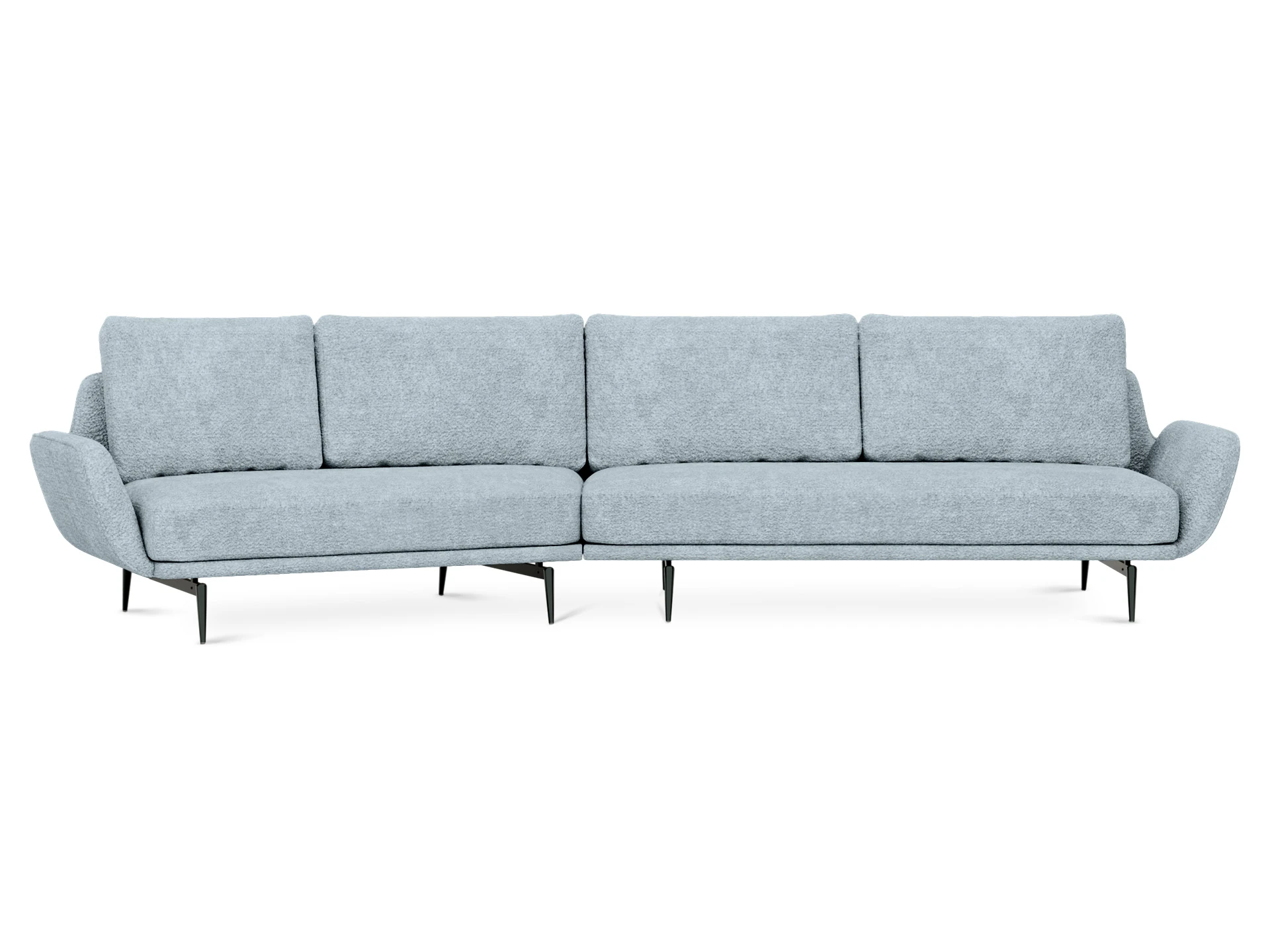 Серия мягкой мебели Ispani — скульптурные пуфы и диваны с возможностью индивидуальной интеграции в различные пространства. Главная идея в дизайне — лаконичность и вариативность. В основе изделий — архитектурный металлический каркас, который поддерживает плавные формы, словно застывшие в воздухе. В конструкции упор сделан на балансе, а также деликатное взаимодействие четких линий каркаса с мягкими подушками сиденья и спинки. Благодаря этому диваны выглядят компактными и эргономичными, но в то же время комфортными и основательными.Зазоры между подушками спинки и невысокие подлокотники придают моделям аккуратный внешний вид, эффект спокойного чувства простоты. Предметы соединяются между собой специальными зацепами, образуя различные композиции. При этом угловые диваны Ispani приближены к параметричной контурной форме, что отличает их от стандартных угловых моделей, добавляет гармонии и особой эстетичности. Доступны различные цветовые комбинации обивки. Это позволяет персонифицировать диваны Ispani и выбирать уникальные сочетания для воссоздания необходимой атмосферы в конкретном интерьере. Лицевой чехол несъемный. В основании изделий – металлические опоры высотой 180 мм, с пластиковыми подпятниками. Изделия соединяются между собой с помощью зацепов, образуя различные композиции.