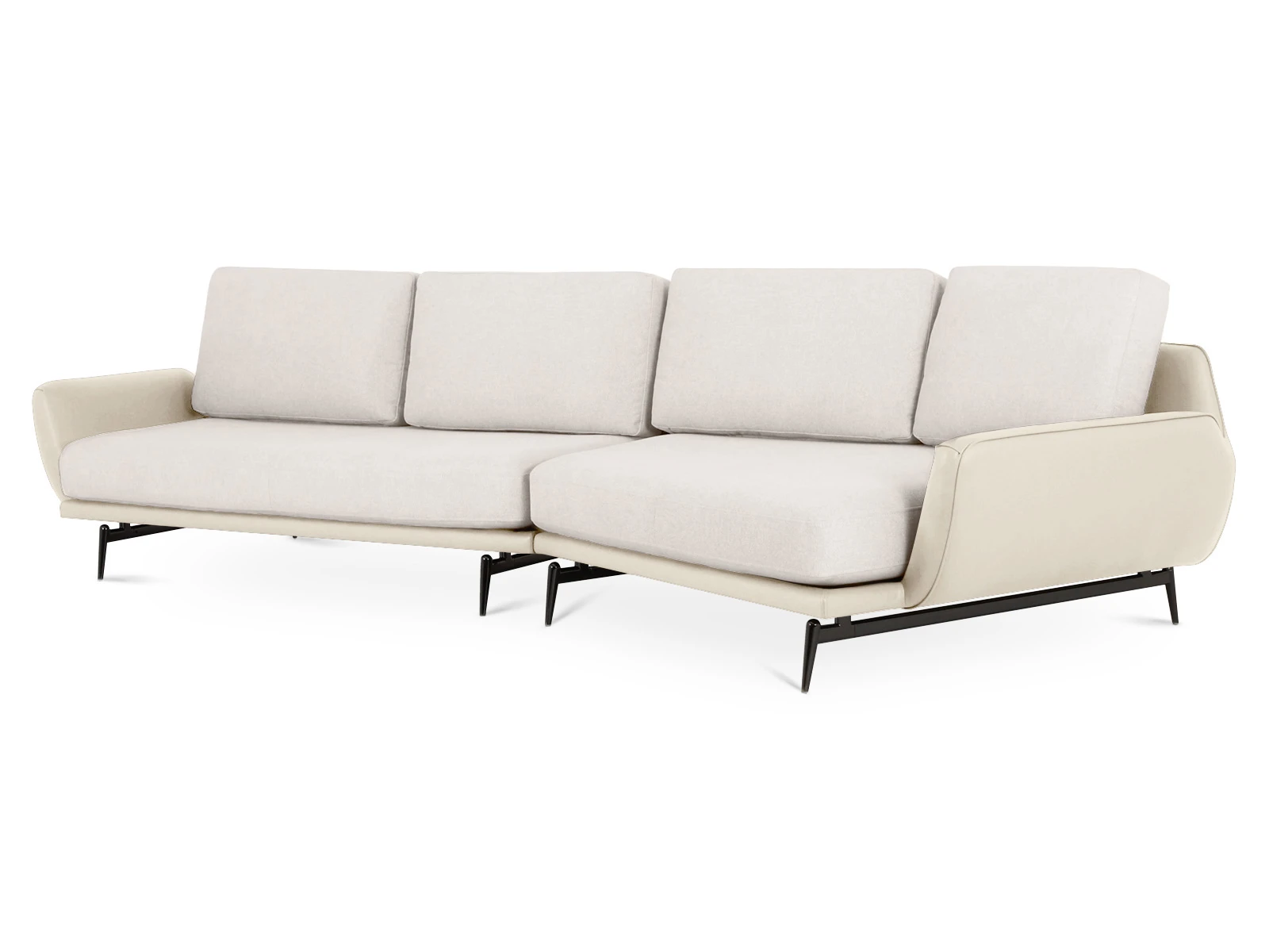 Серия мягкой мебели Ispani — скульптурные пуфы и диваны с возможностью индивидуальной интеграции в различные пространства. Главная идея в дизайне — лаконичность и вариативность. В основе изделий — архитектурный металлический каркас, который поддерживает плавные формы, словно застывшие в воздухе. В конструкции упор сделан на балансе, а также деликатное взаимодействие четких линий каркаса с мягкими подушками сиденья и спинки. Благодаря этому диваны выглядят компактными и эргономичными, но в то же время комфортными и основательными.Зазоры между подушками спинки и невысокие подлокотники придают моделям аккуратный внешний вид, эффект спокойного чувства простоты. Предметы соединяются между собой специальными зацепами, образуя различные композиции. При этом угловые диваны Ispani приближены к параметричной контурной форме, что отличает их от стандартных угловых моделей, добавляет гармонии и особой эстетичности. Доступны различные цветовые комбинации обивки. Это позволяет персонифицировать диваны Ispani и выбирать уникальные сочетания для воссоздания необходимой атмосферы в конкретном интерьере. Лицевой чехол несъемный. В основании изделий – металлические опоры высотой 180 мм, с пластиковыми подпятниками. Изделия соединяются между собой с помощью зацепов, образуя различные композиции.