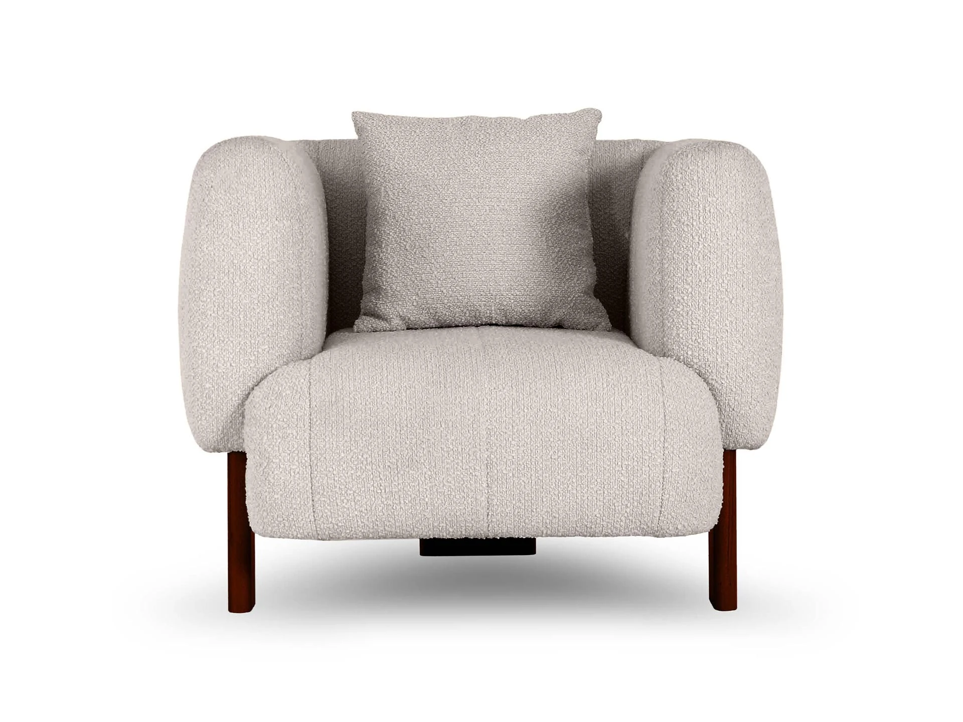 Характер кресла Cassis выражен в эстетичном контрасте мягкого внешнего вида с лаконичными опорами из натурального бука. Высокие подлокотники образуют одно целое со спинкой. Такая архитектура поддерживает ощущение закрытости, безопасности. И отвечает за максимально комфортную посадку. Нежность, которая поддерживает вас буквально со всех сторон. Кресло гармонично смотрится как в просторных локациях: лаундж-зонах загородных домов, отелей, спа, ресторанов, офисов, так и в компактных гостиных, студиях, спальнях, кабинетах. Станет актуальной парой дивану, журнальному или бьюти-столику. С Cassis вы оформите стильный кофейный уголок, где можно отдохнуть, наслаждаясь напитком, читая книгу или занимаясь творчеством. Кресло по периметру декорировано строчкой, что придает ему пышности, фактурности. Обивка букле отвечает за приятные тактильные ощущения. Кресло Cassis — очаровательный островок уединения, в объятиях которого хочется расслабиться и оставаться в них как можно дольше! Лицевой чехол изделия – простеганный, несъемный. Опоры выполнены из массива бука, представлены в трех цветах: светлый, черный, орех. Подпятники – пластиковые с фетровыми накладками. Подушка входит в комплект.