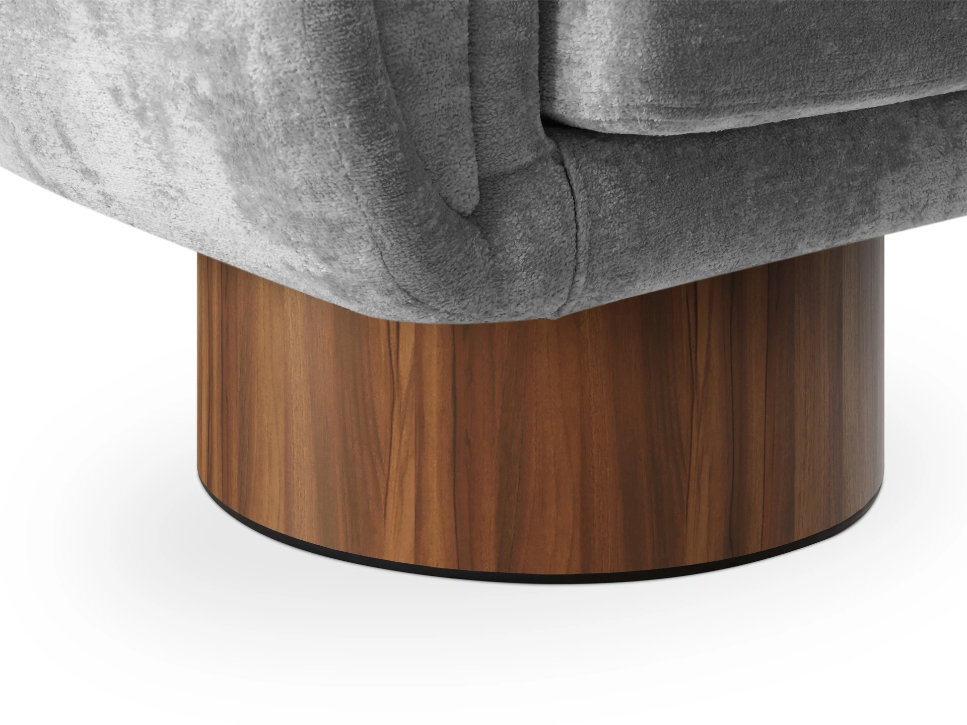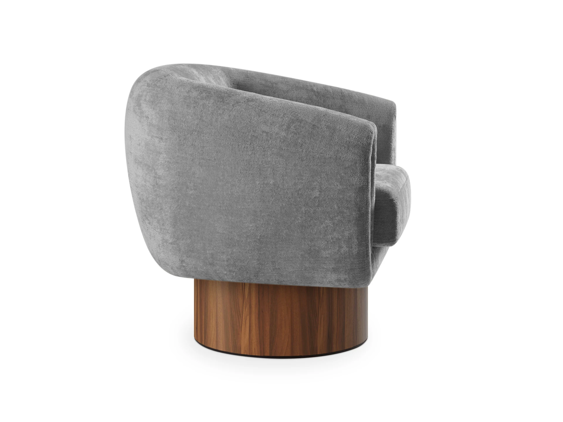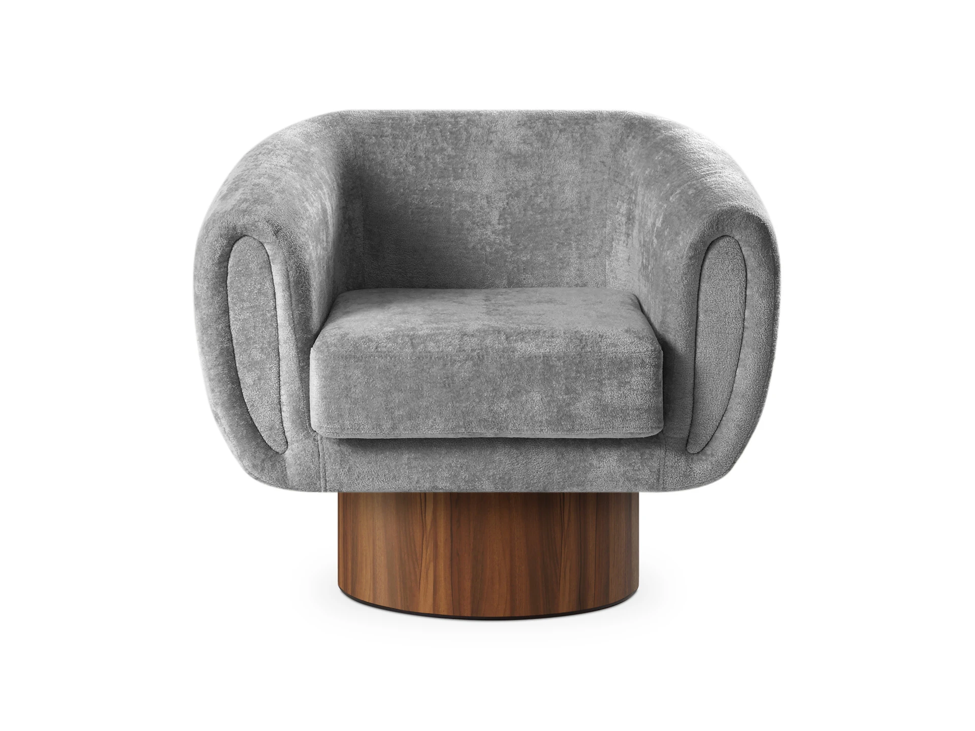 Кресло Guest с анатомическим объемным силуэтом и высокой спинкой обеспечивает эргономичную поддержку. Модель отличается скульптурной геометрией: цилиндрическое основание, квадратное сиденье и полукруглая спинка. Конструктив и материалы: • Каркас и основание: Цилиндрическое основание доступно в двух исполнениях: облицовка тканью или шпоном (дуб натуральный, дуб черный, орех). На нижней поверхности установлены войлочные подпятники. • Механизм:Доступна версия с вращением 360° (поворотная платформа с максимальной нагрузкой до 120 кг) и стационарная. Вращается блок «сиденье-спинка», основание неподвижно. • Наполнение:Многослойный ППУ повышенной мягкости. • Обивка:Чехол (несъемный на спинке/корпусе, съемный на подушке сиденья, фиксация — молния). Функциональность: Кресло адаптировано для жилых и общественных пространств (отели, бизнес-зоны). Поворотный механизм обеспечивает мобильность в компактных помещениях, позволяя легко менять положение относительно стола, окна или собеседника.