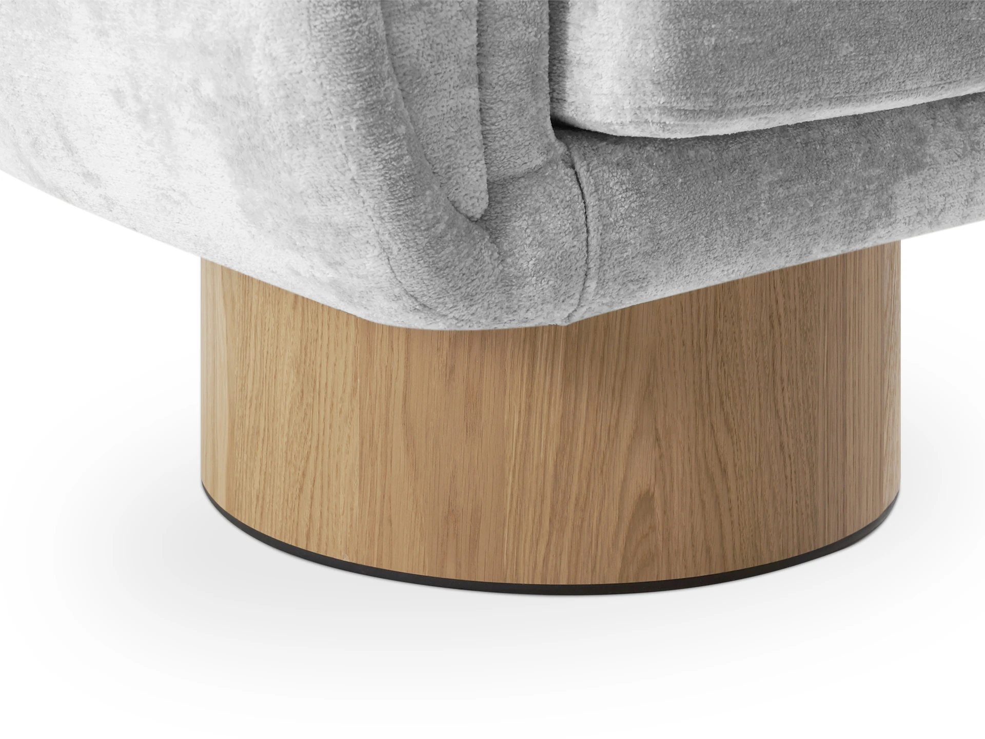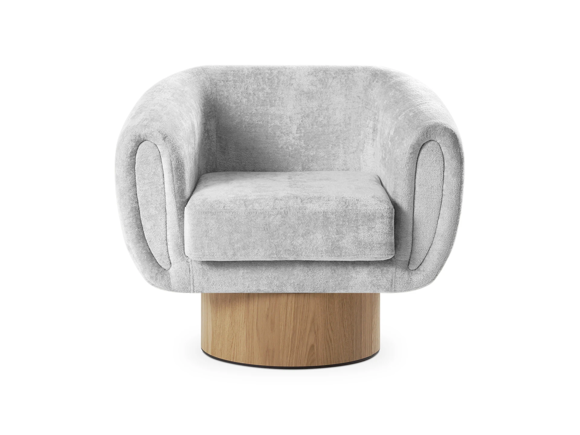 Кресло Guest с анатомическим объемным силуэтом и высокой спинкой обеспечивает эргономичную поддержку. Модель отличается скульптурной геометрией: цилиндрическое основание, квадратное сиденье и полукруглая спинка. Конструктив и материалы: • Каркас и основание: Цилиндрическое основание доступно в двух исполнениях: облицовка тканью или шпоном (дуб натуральный, дуб черный, орех). На нижней поверхности установлены войлочные подпятники. • Механизм:Доступна версия с вращением 360° (поворотная платформа с максимальной нагрузкой до 120 кг) и стационарная. Вращается блок «сиденье-спинка», основание неподвижно. • Наполнение:Многослойный ППУ повышенной мягкости. • Обивка:Чехол (несъемный на спинке/корпусе, съемный на подушке сиденья, фиксация — молния). Функциональность: Кресло адаптировано для жилых и общественных пространств (отели, бизнес-зоны). Поворотный механизм обеспечивает мобильность в компактных помещениях, позволяя легко менять положение относительно стола, окна или собеседника.