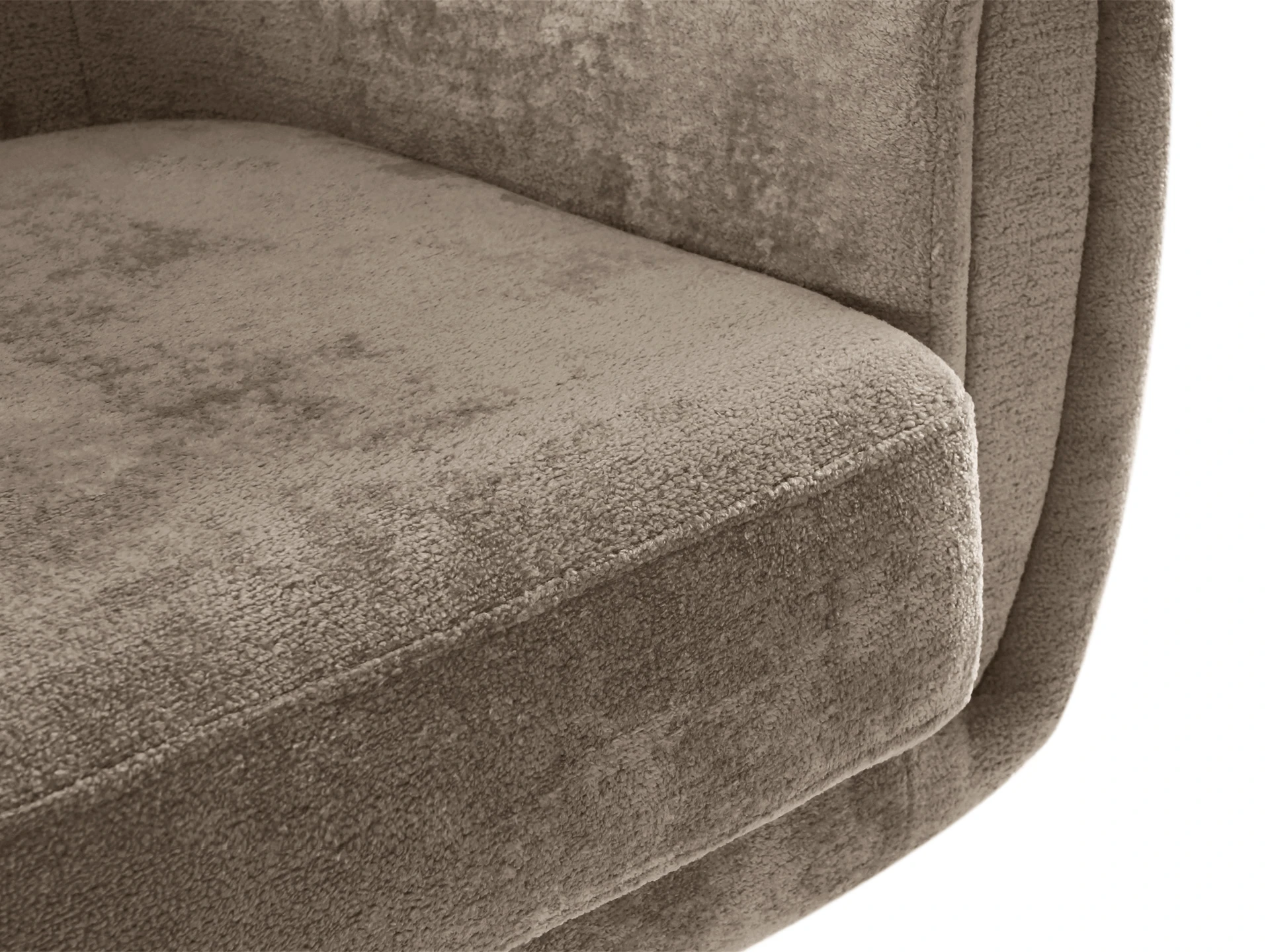Кресло Guest с анатомическим объемным силуэтом и высокой спинкой обеспечивает эргономичную поддержку. Модель отличается скульптурной геометрией: цилиндрическое основание, квадратное сиденье и полукруглая спинка. Конструктив и материалы: • Каркас и основание: Цилиндрическое основание доступно в двух исполнениях: облицовка тканью или шпоном (дуб натуральный, дуб черный, орех). На нижней поверхности установлены войлочные подпятники. • Механизм:Доступна версия с вращением 360° (поворотная платформа с максимальной нагрузкой до 120 кг) и стационарная. Вращается блок «сиденье-спинка», основание неподвижно. • Наполнение:Многослойный ППУ повышенной мягкости. • Обивка:Чехол (несъемный на спинке/корпусе, съемный на подушке сиденья, фиксация — молния). Функциональность: Кресло адаптировано для жилых и общественных пространств (отели, бизнес-зоны). Поворотный механизм обеспечивает мобильность в компактных помещениях, позволяя легко менять положение относительно стола, окна или собеседника.