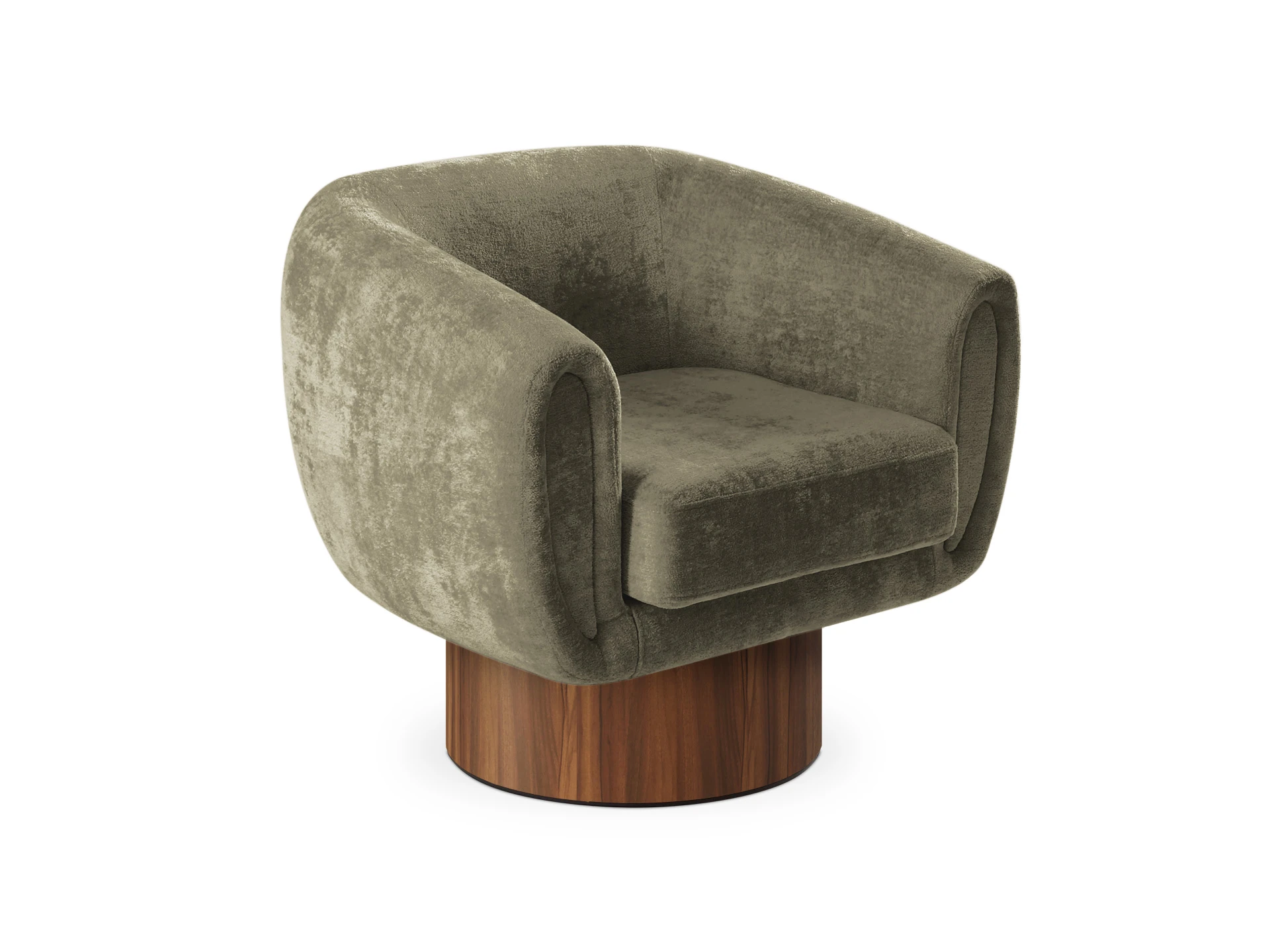 Кресло Guest с анатомическим объемным силуэтом и высокой спинкой обеспечивает эргономичную поддержку. Модель отличается скульптурной геометрией: цилиндрическое основание, квадратное сиденье и полукруглая спинка. Конструктив и материалы: • Каркас и основание: Цилиндрическое основание доступно в двух исполнениях: облицовка тканью или шпоном (дуб натуральный, дуб черный, орех). На нижней поверхности установлены войлочные подпятники. • Механизм:Доступна версия с вращением 360° (поворотная платформа с максимальной нагрузкой до 120 кг) и стационарная. Вращается блок «сиденье-спинка», основание неподвижно. • Наполнение:Многослойный ППУ повышенной мягкости. • Обивка:Чехол (несъемный на спинке/корпусе, съемный на подушке сиденья, фиксация — молния). Функциональность: Кресло адаптировано для жилых и общественных пространств (отели, бизнес-зоны). Поворотный механизм обеспечивает мобильность в компактных помещениях, позволяя легко менять положение относительно стола, окна или собеседника.