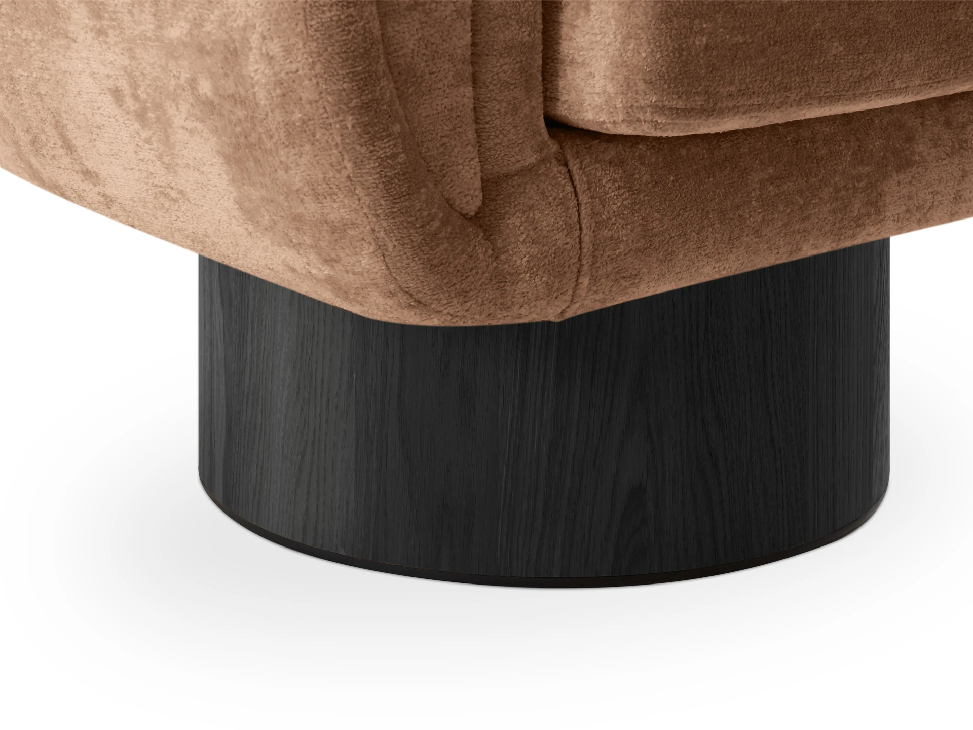 Кресло Guest с анатомическим объемным силуэтом и высокой спинкой обеспечивает эргономичную поддержку. Модель отличается скульптурной геометрией: цилиндрическое основание, квадратное сиденье и полукруглая спинка. Конструктив и материалы: • Каркас и основание: Цилиндрическое основание доступно в двух исполнениях: облицовка тканью или шпоном (дуб натуральный, дуб черный, орех). На нижней поверхности установлены войлочные подпятники. • Механизм:Доступна версия с вращением 360° (поворотная платформа с максимальной нагрузкой до 120 кг) и стационарная. Вращается блок «сиденье-спинка», основание неподвижно. • Наполнение:Многослойный ППУ повышенной мягкости. • Обивка:Чехол (несъемный на спинке/корпусе, съемный на подушке сиденья, фиксация — молния). Функциональность: Кресло адаптировано для жилых и общественных пространств (отели, бизнес-зоны). Поворотный механизм обеспечивает мобильность в компактных помещениях, позволяя легко менять положение относительно стола, окна или собеседника.