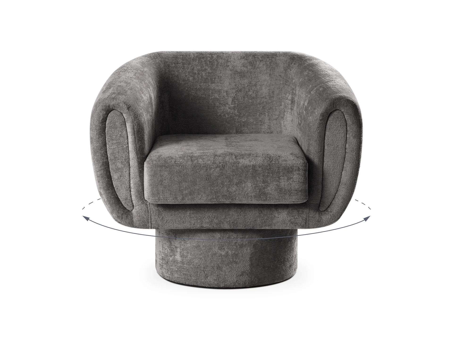 Кресло Guest с анатомическим объемным силуэтом и высокой спинкой обеспечивает эргономичную поддержку. Модель отличается скульптурной геометрией: цилиндрическое основание, квадратное сиденье и полукруглая спинка. Конструктив и материалы: • Каркас и основание: Цилиндрическое основание доступно в двух исполнениях: облицовка тканью или шпоном (дуб натуральный, дуб черный, орех). На нижней поверхности установлены войлочные подпятники. • Механизм:Доступна версия с вращением 360° (поворотная платформа с максимальной нагрузкой до 120 кг) и стационарная. Вращается блок «сиденье-спинка», основание неподвижно. • Наполнение:Многослойный ППУ повышенной мягкости. • Обивка:Чехол (несъемный на спинке/корпусе, съемный на подушке сиденья, фиксация — молния). Функциональность: Кресло адаптировано для жилых и общественных пространств (отели, бизнес-зоны). Поворотный механизм обеспечивает мобильность в компактных помещениях, позволяя легко менять положение относительно стола, окна или собеседника.