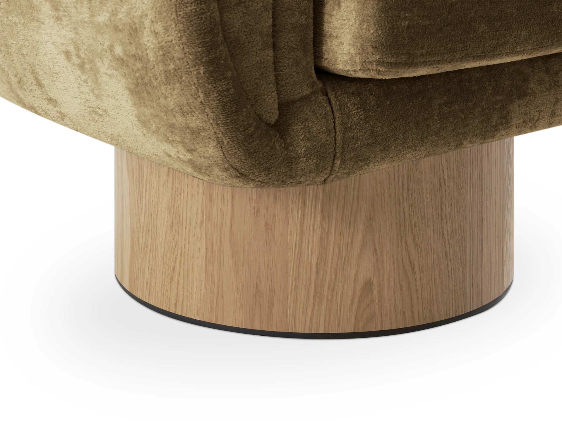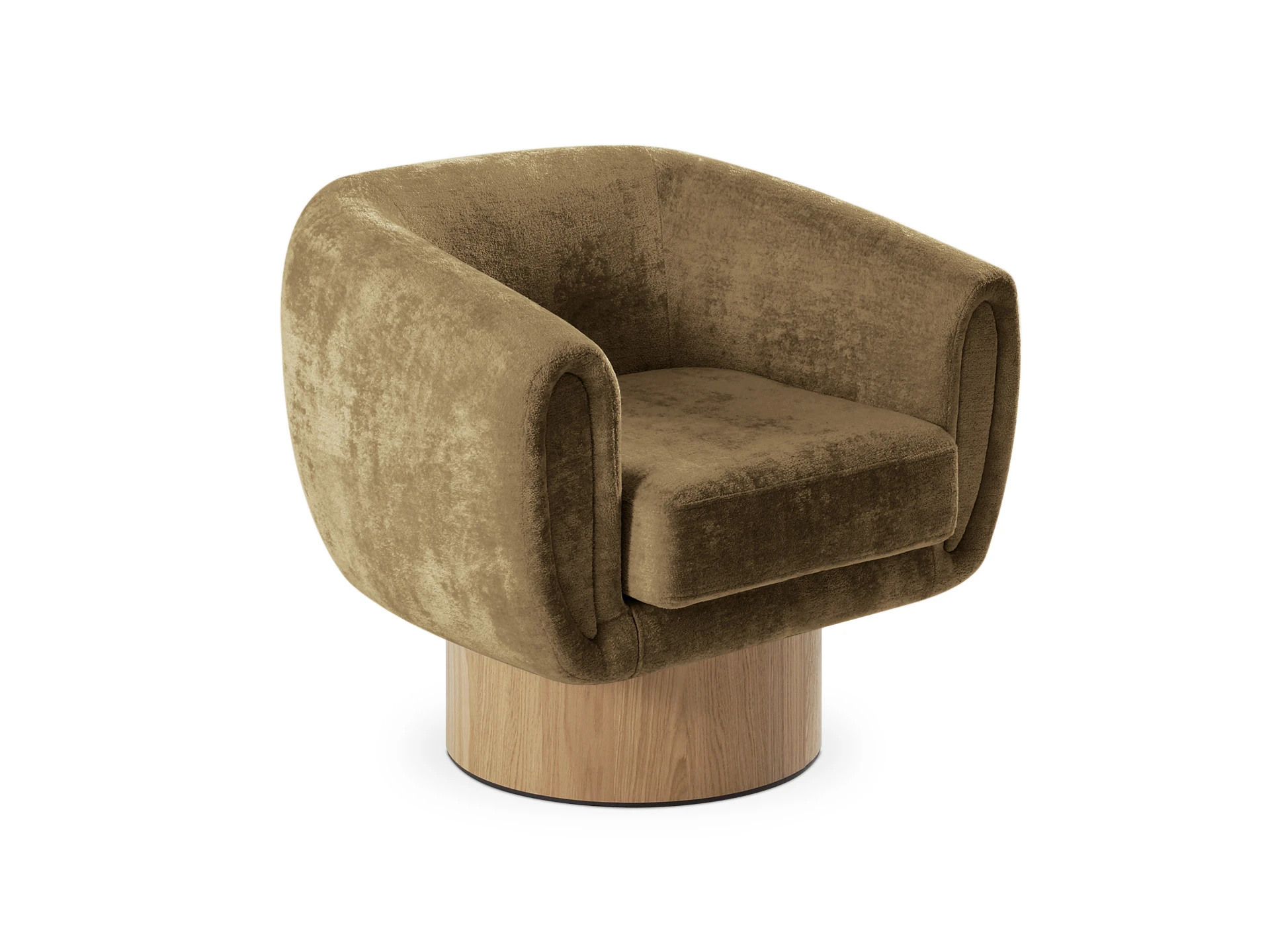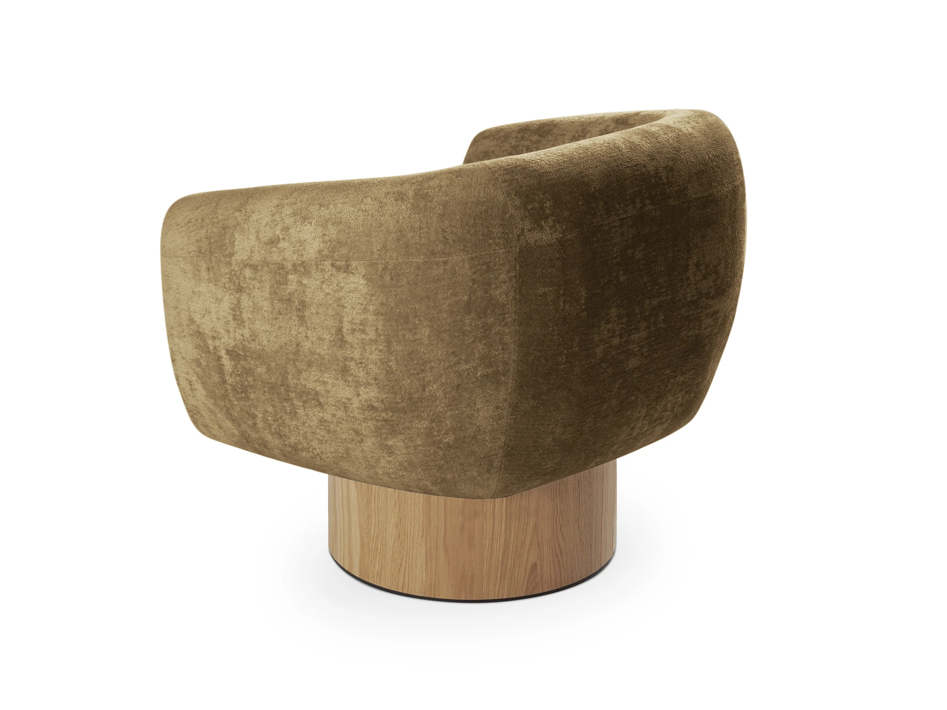Кресло Guest с анатомическим объемным силуэтом и высокой спинкой обеспечивает эргономичную поддержку. Модель отличается скульптурной геометрией: цилиндрическое основание, квадратное сиденье и полукруглая спинка. Конструктив и материалы: • Каркас и основание: Цилиндрическое основание доступно в двух исполнениях: облицовка тканью или шпоном (дуб натуральный, дуб черный, орех). На нижней поверхности установлены войлочные подпятники. • Механизм:Доступна версия с вращением 360° (поворотная платформа с максимальной нагрузкой до 120 кг) и стационарная. Вращается блок «сиденье-спинка», основание неподвижно. • Наполнение:Многослойный ППУ повышенной мягкости. • Обивка:Чехол (несъемный на спинке/корпусе, съемный на подушке сиденья, фиксация — молния). Функциональность: Кресло адаптировано для жилых и общественных пространств (отели, бизнес-зоны). Поворотный механизм обеспечивает мобильность в компактных помещениях, позволяя легко менять положение относительно стола, окна или собеседника.