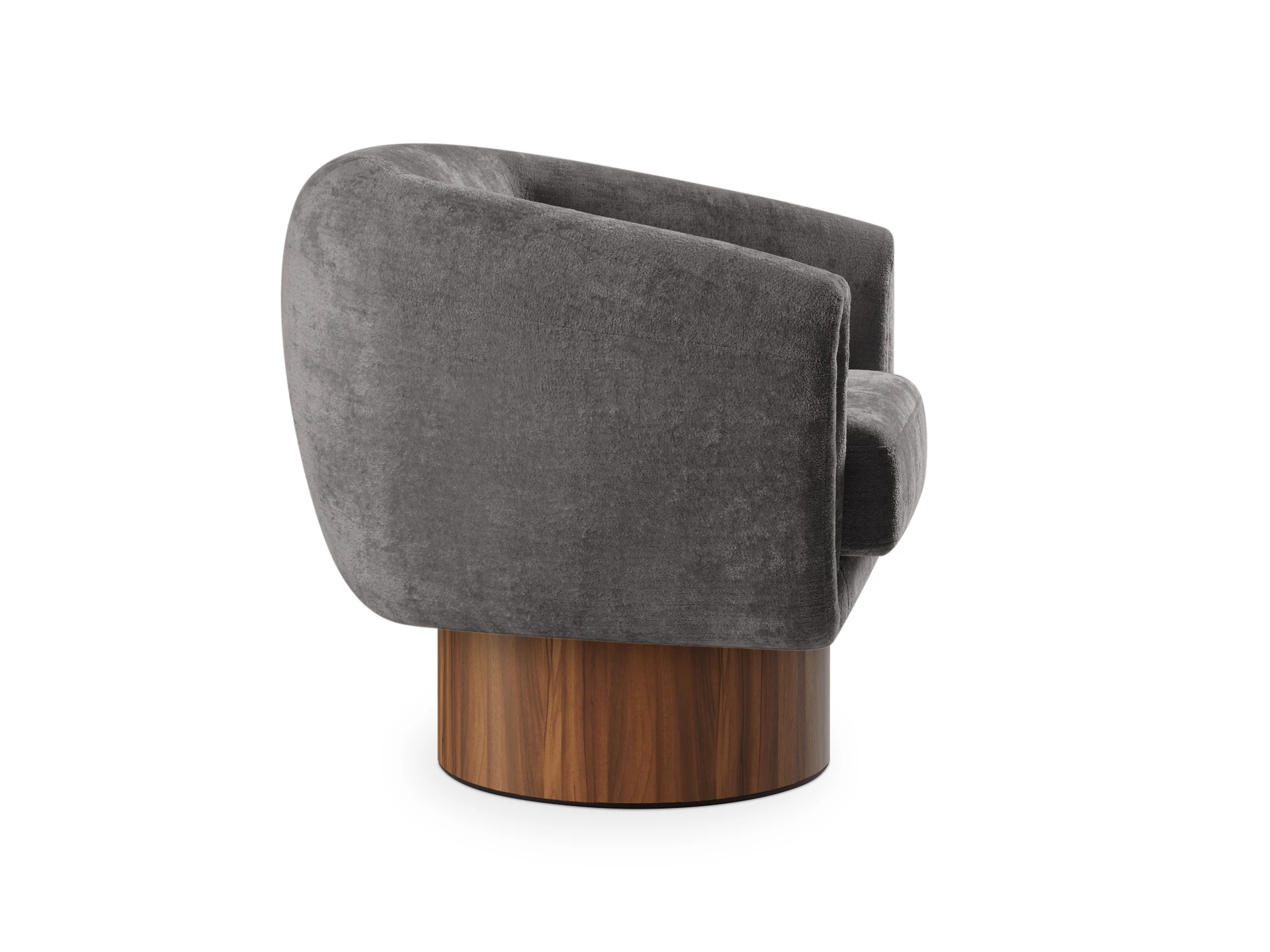 Кресло Guest с анатомическим объемным силуэтом и высокой спинкой обеспечивает эргономичную поддержку. Модель отличается скульптурной геометрией: цилиндрическое основание, квадратное сиденье и полукруглая спинка. Конструктив и материалы: • Каркас и основание: Цилиндрическое основание доступно в двух исполнениях: облицовка тканью или шпоном (дуб натуральный, дуб черный, орех). На нижней поверхности установлены войлочные подпятники. • Механизм:Доступна версия с вращением 360° (поворотная платформа с максимальной нагрузкой до 120 кг) и стационарная. Вращается блок «сиденье-спинка», основание неподвижно. • Наполнение:Многослойный ППУ повышенной мягкости. • Обивка:Чехол (несъемный на спинке/корпусе, съемный на подушке сиденья, фиксация — молния). Функциональность: Кресло адаптировано для жилых и общественных пространств (отели, бизнес-зоны). Поворотный механизм обеспечивает мобильность в компактных помещениях, позволяя легко менять положение относительно стола, окна или собеседника.