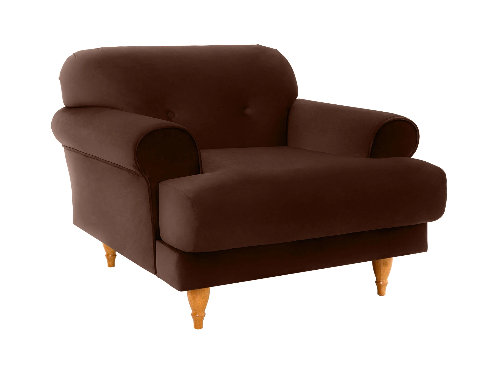 Мягкое кресло Italia на деревянных ножках. Спинка симметрично декорирована пуговицами. Дизайн сочетает в себе черты классики, модерна и ретростиля. Резные деревянные ножки приподнимают кресло над полом, создавая просвет и наполняя помещение дополнительным воздухом. Что дает возможность визуально увеличить пространство. Невысокая спинка, закруглённые объёмные подлокотники, широкое сиденье создают эргономичную архитектуру кресла. Модель создана с учетом анатомических особенностей, поэтому в кресле Italia можно максимально расслабиться и ощутить настоящее умиротворение.|Надёжность и долговечность изделия обеспечивает комбинированный каркас из деревянного бруса, МДФ и фанеры. Упругость сиденья и спинки поддерживают пенополиуретан и синтепон. У этих материалов уникальная плотная текстура, сочетающая мягкость и прочность. Обивка из 100 % полиэстера не склонна к образованию пиллинга, затяжек, отлично поддается чистке. Цвет – на ваш выбор. Эффектное кресло Italia станет любимцем в доме, стоит только оказаться в его нежных объятиях.