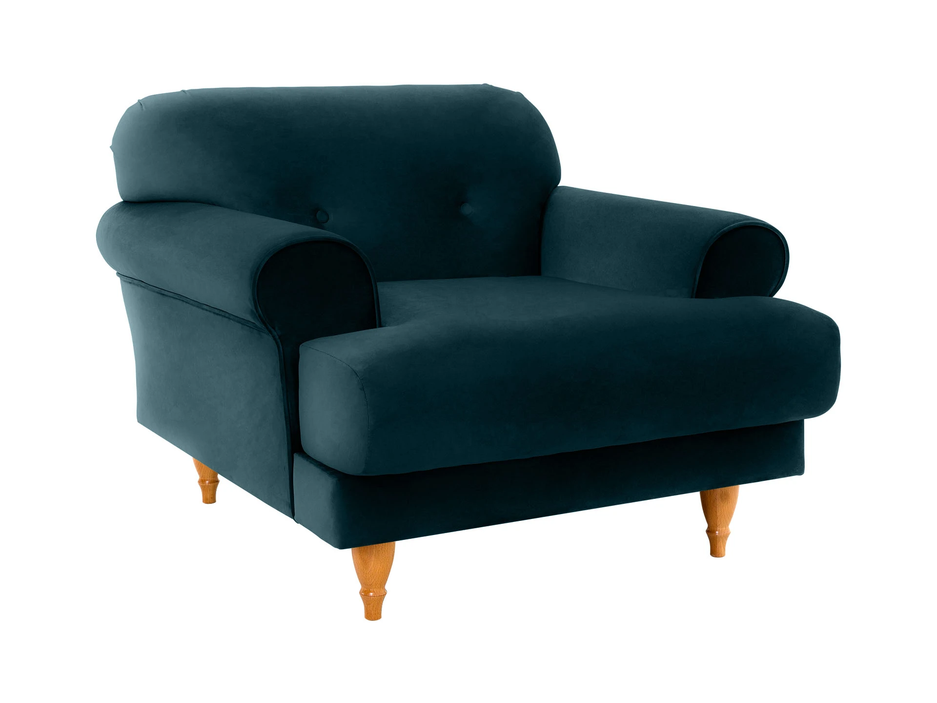 Мягкое кресло Italia на деревянных ножках. Спинка симметрично декорирована пуговицами. Дизайн сочетает в себе черты классики, модерна и ретростиля. Резные деревянные ножки приподнимают кресло над полом, создавая просвет и наполняя помещение дополнительным воздухом. Что дает возможность визуально увеличить пространство. Невысокая спинка, закруглённые объёмные подлокотники, широкое сиденье создают эргономичную архитектуру кресла. Модель создана с учетом анатомических особенностей, поэтому в кресле Italia можно максимально расслабиться и ощутить настоящее умиротворение.|Надёжность и долговечность изделия обеспечивает комбинированный каркас из деревянного бруса, МДФ и фанеры. Упругость сиденья и спинки поддерживают пенополиуретан и синтепон. У этих материалов уникальная плотная текстура, сочетающая мягкость и прочность. Обивка из 100 % полиэстера не склонна к образованию пиллинга, затяжек, отлично поддается чистке. Цвет – на ваш выбор. Эффектное кресло Italia станет любимцем в доме, стоит только оказаться в его нежных объятиях.