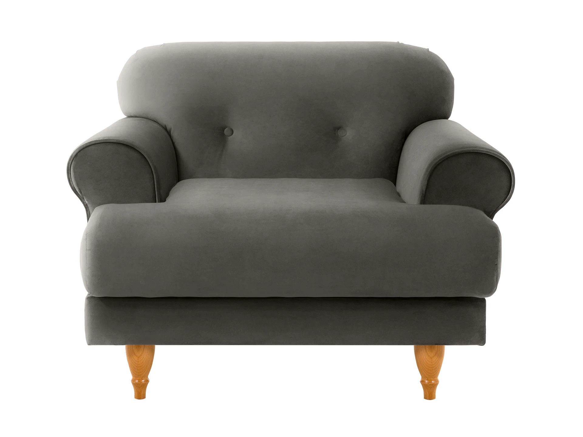 Мягкое кресло Italia на деревянных ножках. Спинка симметрично декорирована пуговицами. Дизайн сочетает в себе черты классики, модерна и ретростиля. Резные деревянные ножки приподнимают кресло над полом, создавая просвет и наполняя помещение дополнительным воздухом. Что дает возможность визуально увеличить пространство. Невысокая спинка, закруглённые объёмные подлокотники, широкое сиденье создают эргономичную архитектуру кресла. Модель создана с учетом анатомических особенностей, поэтому в кресле Italia можно максимально расслабиться и ощутить настоящее умиротворение.|Надёжность и долговечность изделия обеспечивает комбинированный каркас из деревянного бруса, МДФ и фанеры. Упругость сиденья и спинки поддерживают пенополиуретан и синтепон. У этих материалов уникальная плотная текстура, сочетающая мягкость и прочность. Обивка из 100 % полиэстера не склонна к образованию пиллинга, затяжек, отлично поддается чистке. Цвет – на ваш выбор. Эффектное кресло Italia станет любимцем в доме, стоит только оказаться в его нежных объятиях.