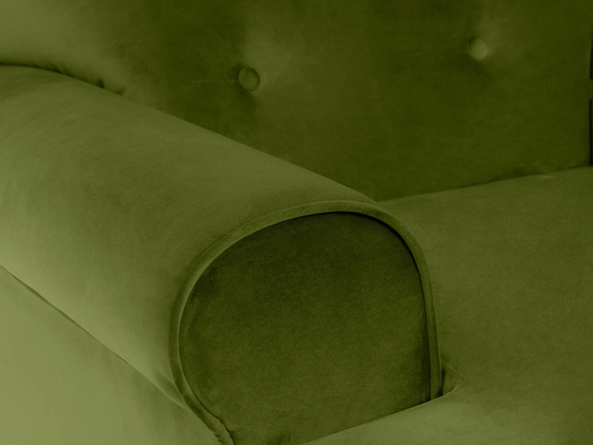 Мягкое кресло Italia на деревянных ножках. Спинка симметрично декорирована пуговицами. Дизайн сочетает в себе черты классики, модерна и ретростиля. Резные деревянные ножки приподнимают кресло над полом, создавая просвет и наполняя помещение дополнительным воздухом. Что дает возможность визуально увеличить пространство. Невысокая спинка, закруглённые объёмные подлокотники, широкое сиденье создают эргономичную архитектуру кресла. Модель создана с учетом анатомических особенностей, поэтому в кресле Italia можно максимально расслабиться и ощутить настоящее умиротворение.|Надёжность и долговечность изделия обеспечивает комбинированный каркас из деревянного бруса, МДФ и фанеры. Упругость сиденья и спинки поддерживают пенополиуретан и синтепон. У этих материалов уникальная плотная текстура, сочетающая мягкость и прочность. Обивка из 100 % полиэстера не склонна к образованию пиллинга, затяжек, отлично поддается чистке. Цвет – на ваш выбор. Эффектное кресло Italia станет любимцем в доме, стоит только оказаться в его нежных объятиях.