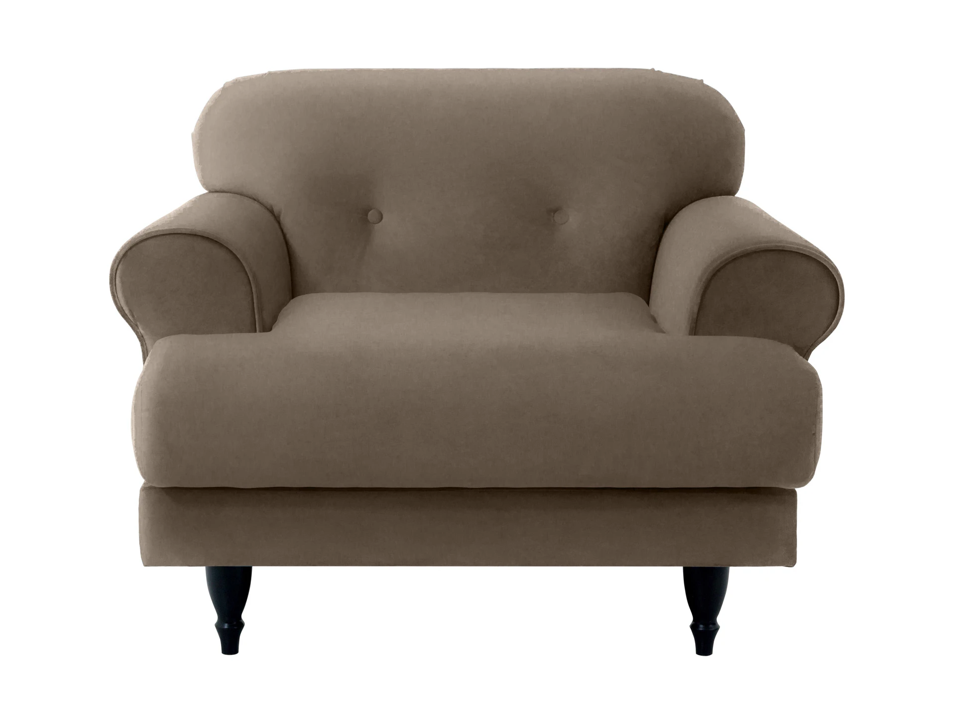 Мягкое кресло Italia на деревянных ножках. Спинка симметрично декорирована пуговицами. Дизайн сочетает в себе черты классики, модерна и ретростиля. Резные деревянные ножки приподнимают кресло над полом, создавая просвет и наполняя помещение дополнительным воздухом. Что дает возможность визуально увеличить пространство. Невысокая спинка, закруглённые объёмные подлокотники, широкое сиденье создают эргономичную архитектуру кресла. Модель создана с учетом анатомических особенностей, поэтому в кресле Italia можно максимально расслабиться и ощутить настоящее умиротворение.|Надёжность и долговечность изделия обеспечивает комбинированный каркас из деревянного бруса, МДФ и фанеры. Упругость сиденья и спинки поддерживают пенополиуретан и синтепон. У этих материалов уникальная плотная текстура, сочетающая мягкость и прочность. Обивка из 100 % полиэстера не склонна к образованию пиллинга, затяжек, отлично поддается чистке. Цвет – на ваш выбор. Эффектное кресло Italia станет любимцем в доме, стоит только оказаться в его нежных объятиях.