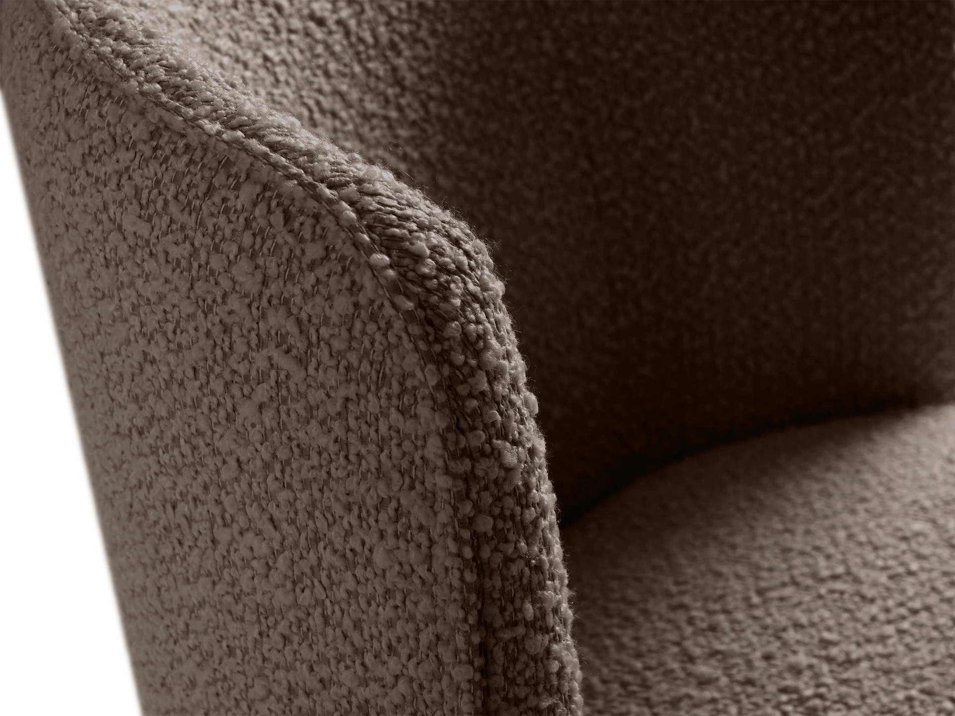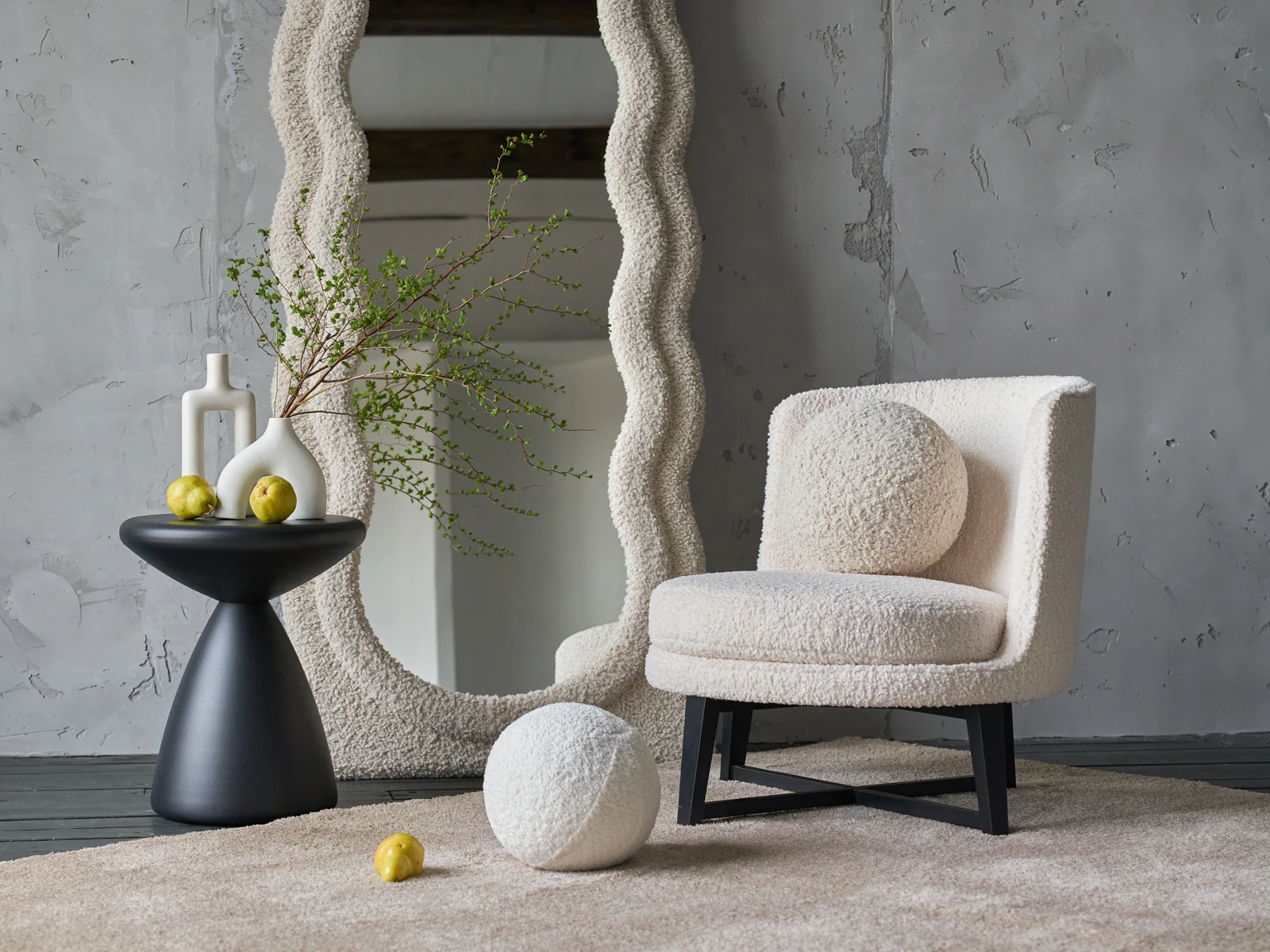 Кресло Onore очаровывает плавным силуэтом и лаконичным дизайном. Прямые граненые ножки из дерева невысоко приподнимают круглое сиденье с полукруглой спинкой. Симбиоз форм создает простой и выразительный силуэт, рождающий чувство спокойствия, умиротворения. «Обнимающая» спинка отвечает за защиту и уединение. Фактурная обивка букле придает мягкости, уюта, тепла.Кресло Onore подходит для оформления городской квартиры, студии, загородного дома, офиса, кафе, отеля. Эстетично впишется в гостиную с настроением неоклассики, сканди, минимализма, украсит спальню, детскую, кабинет, составит изящную пару журнальному или косметическому столику, дивану, пуфу, банкетке и подарит вам бесценные часы комфортного отдыха. Материал обивки - искусственный мех, материал ножек - массив дерева. На ножках предусмотрены специальные подпятники, которые предотвращают скольжение и повреждения напольного покрытия. Размер упаковки: 72х69х72 см.