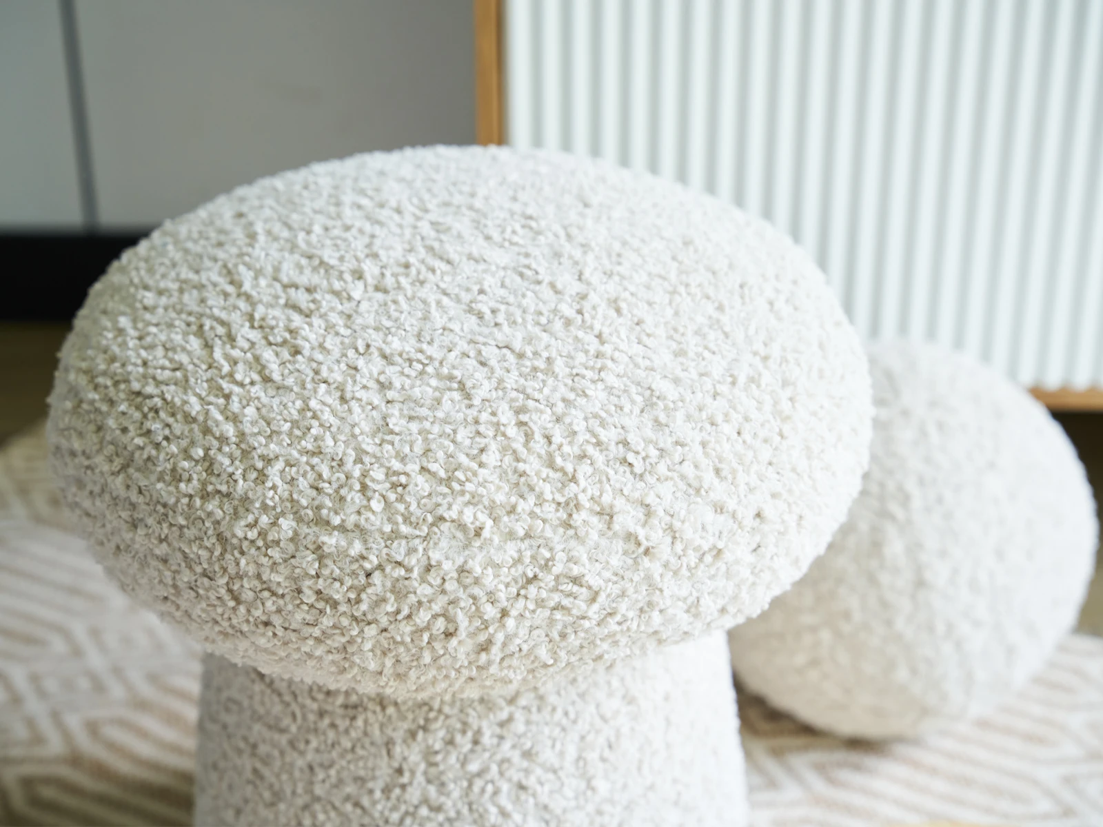 Каркасный пуф Cookie очаровывает органичностью и плавными линиями. Круглое мягкое сиденье установлено на округлую ножку, что обеспечивает устойчивость и надёжность. Обивка — искусственный «кудрявый» мех, который придаёт изделию нежности и осязаемого комфорта. Этот симпатичный «грибочек» станет идеальным компаньоном для дивана, кресла, журнального столика. Подставка для ног, сиденье, меховой «столик» — пуфик справится с любой задачей. Подходит для домашних и коммерческих локаций. Украсит своей «трогательной» миниатюрностью гостиную, детскую, студию, спальню, входную группу, бьюти- и лаундж-зону. Тактильно приятный, фактурный, комфортный пуф Cookie может стать тем самым заключительным элементом в вашем интерьере. Подчеркнет его актуальность, дружелюбность, расслабленность. Пуф «COOKIE» - мягкий каркасный пуф. Лицевой чехол изделия – несъемный. Нижняя часть ножек закрыта тканью с логотипом, с установленными пластиковыми подпятниками.