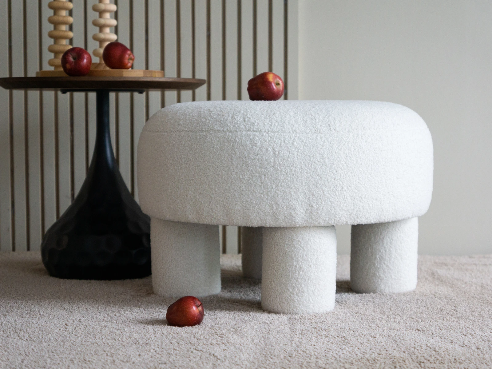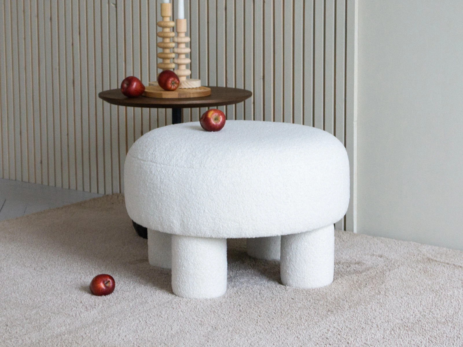 Каркасный пуфик Ron ron очаровывает органичностью и плавными линиями. Круглое мягкое сиденье установлено на 4 цилиндрические опоры, что обеспечивает устойчивость и надежность. Обивка — искусственный мех с фактурой «букле», который придает изделию нежности и осязаемого комфорта. Станет идеальным компаньоном для дивана, кресла, журнального столика. Подставка для ног, сиденье, меховой «столик» — Ron ron исполнит любой ваш каприз. Подходит для домашних и коммерческих локаций. Украсит своей «трогательной» миниатюрностью гостиную, детскую, студию, бьюти- и лаундж-зону. Тактильно приятный, теплый, романтичный, богемный Ron ron может стать той самой «фишкой», которая изменит восприятие вашего интерьера. Подчеркнет его актуальность, дружелюбность, расслабленность. Пуф Ron ron - мягкий каркасный пуф, с округлым сидением, установленный на 4 цилиндрические опоры. Основной лицевой чехол несъемный. Максимальная нагрузка - 150 кг.