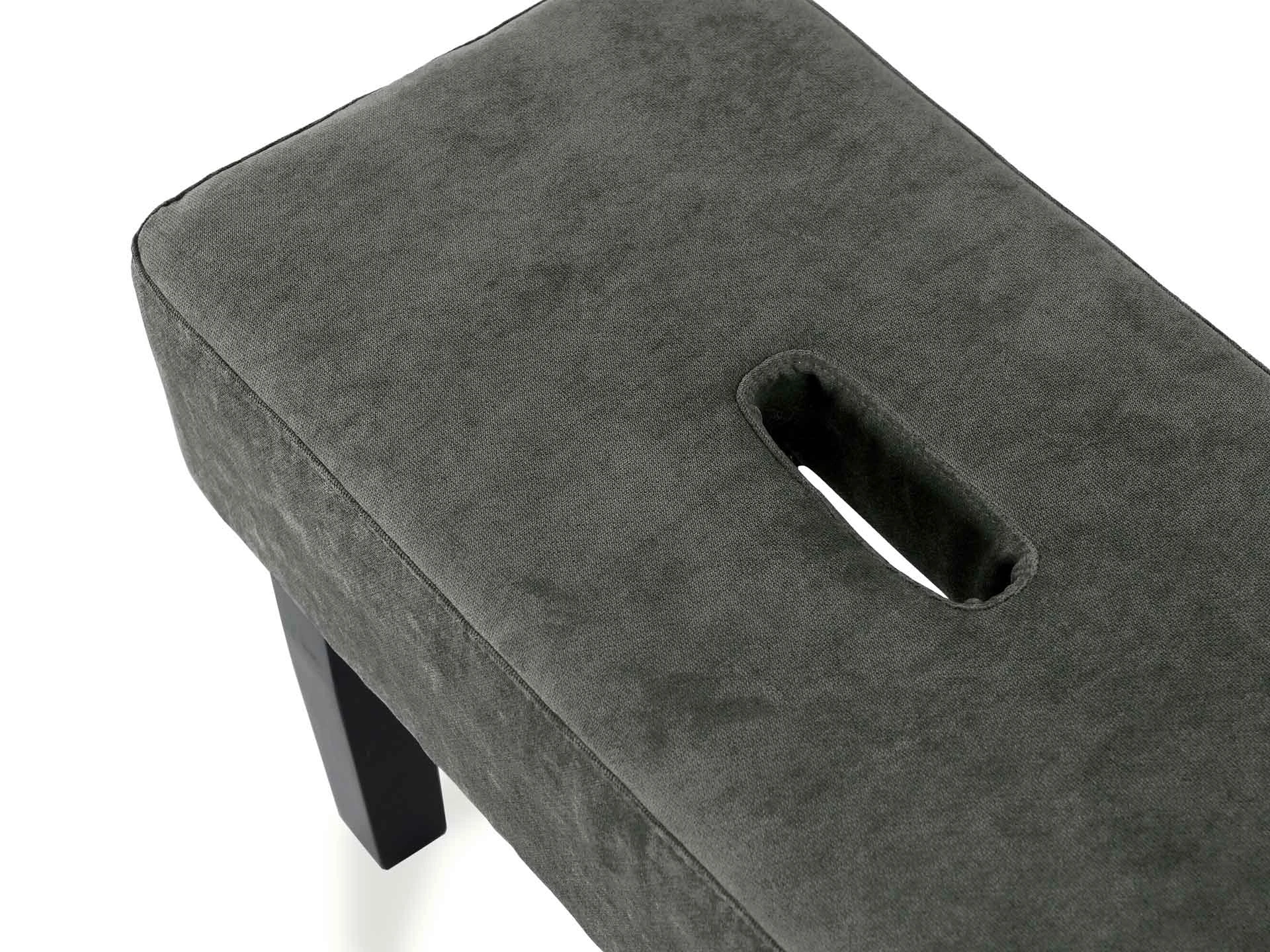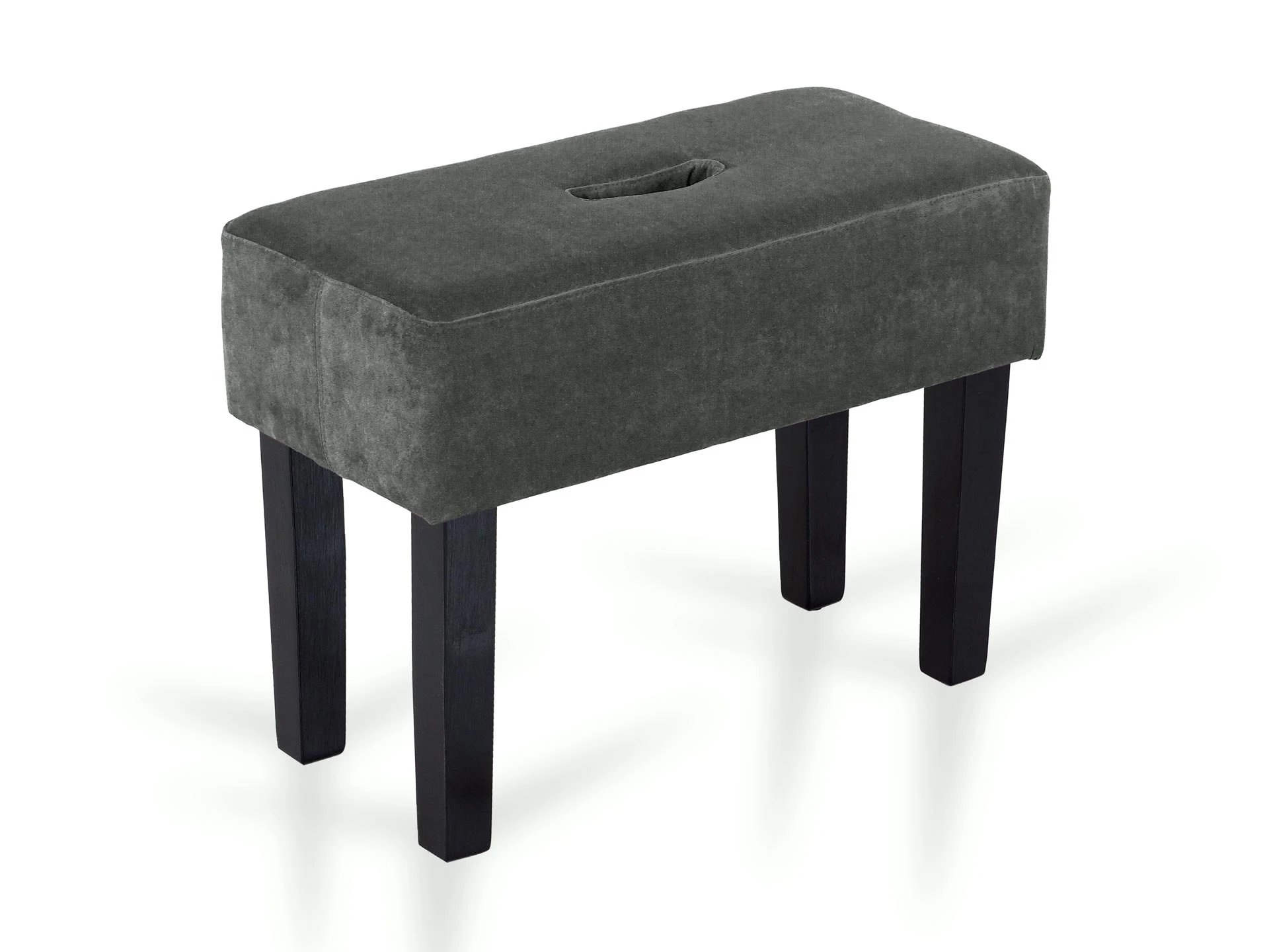 Табурет мягкий. Благодаря отверстию в верхней части табурет легко перемещать. Можно использовать под ноги, которые устают в течение рабочего дня или поставить в коридоре для удобства при обувании.