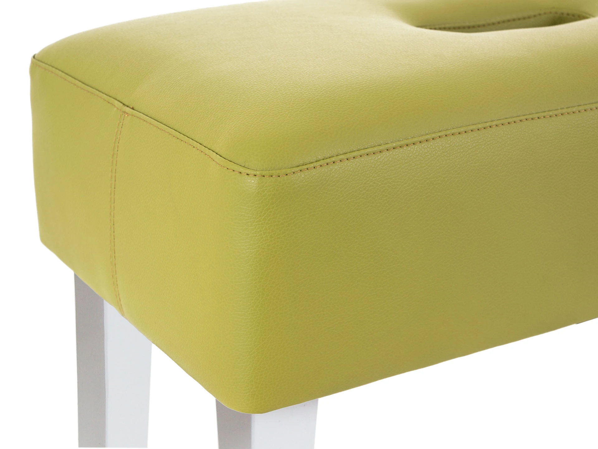 Табурет мягкий. Благодаря отверстию в верхней части табурет легко перемещать. Можно использовать под ноги, которые устают в течение рабочего дня или поставить в коридоре для удобства при обувании.
