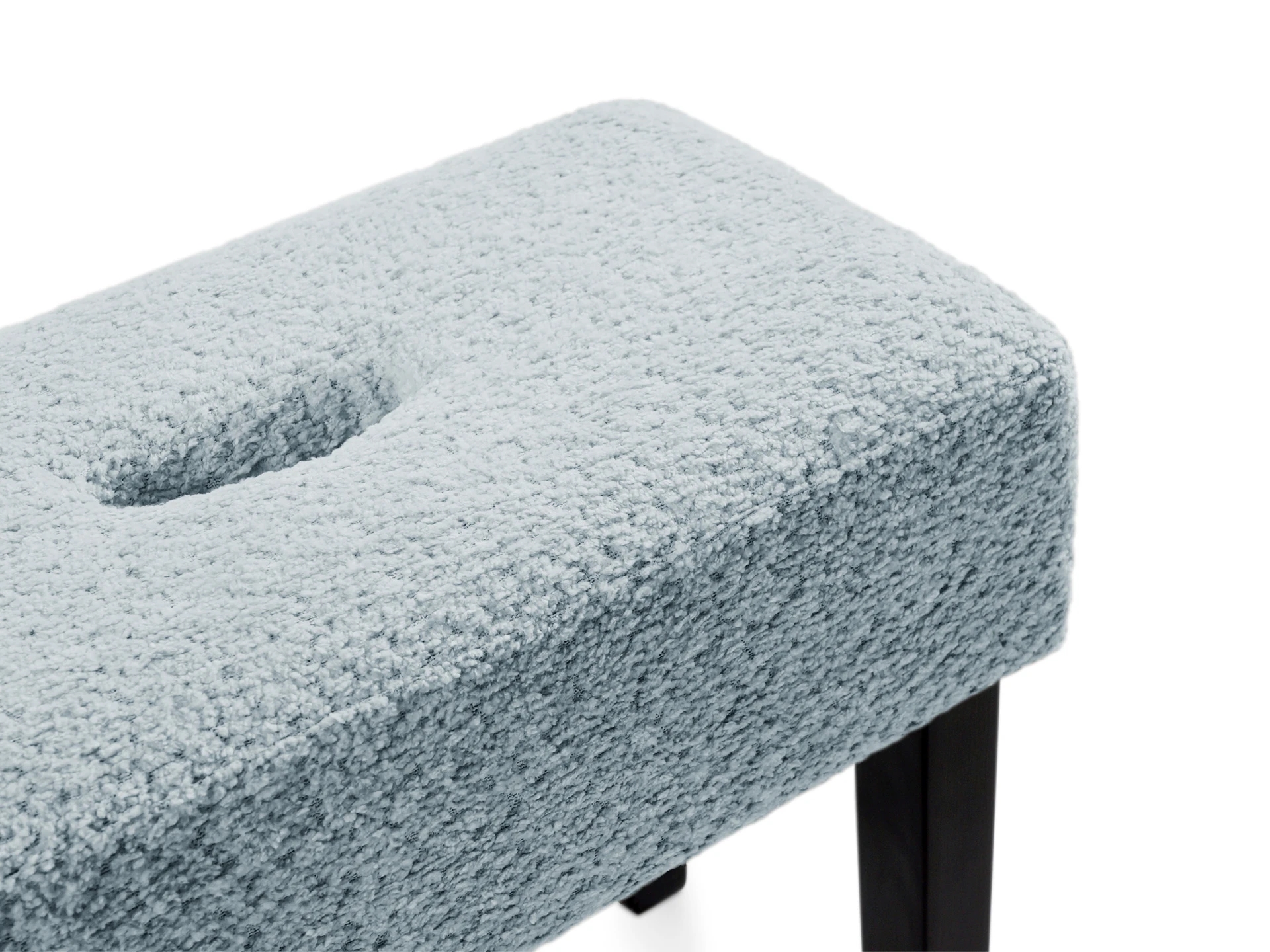 Табурет мягкий. Благодаря отверстию в верхней части табурет легко перемещать. Можно использовать под ноги, которые устают в течение рабочего дня или поставить в коридоре для удобства при обувании.