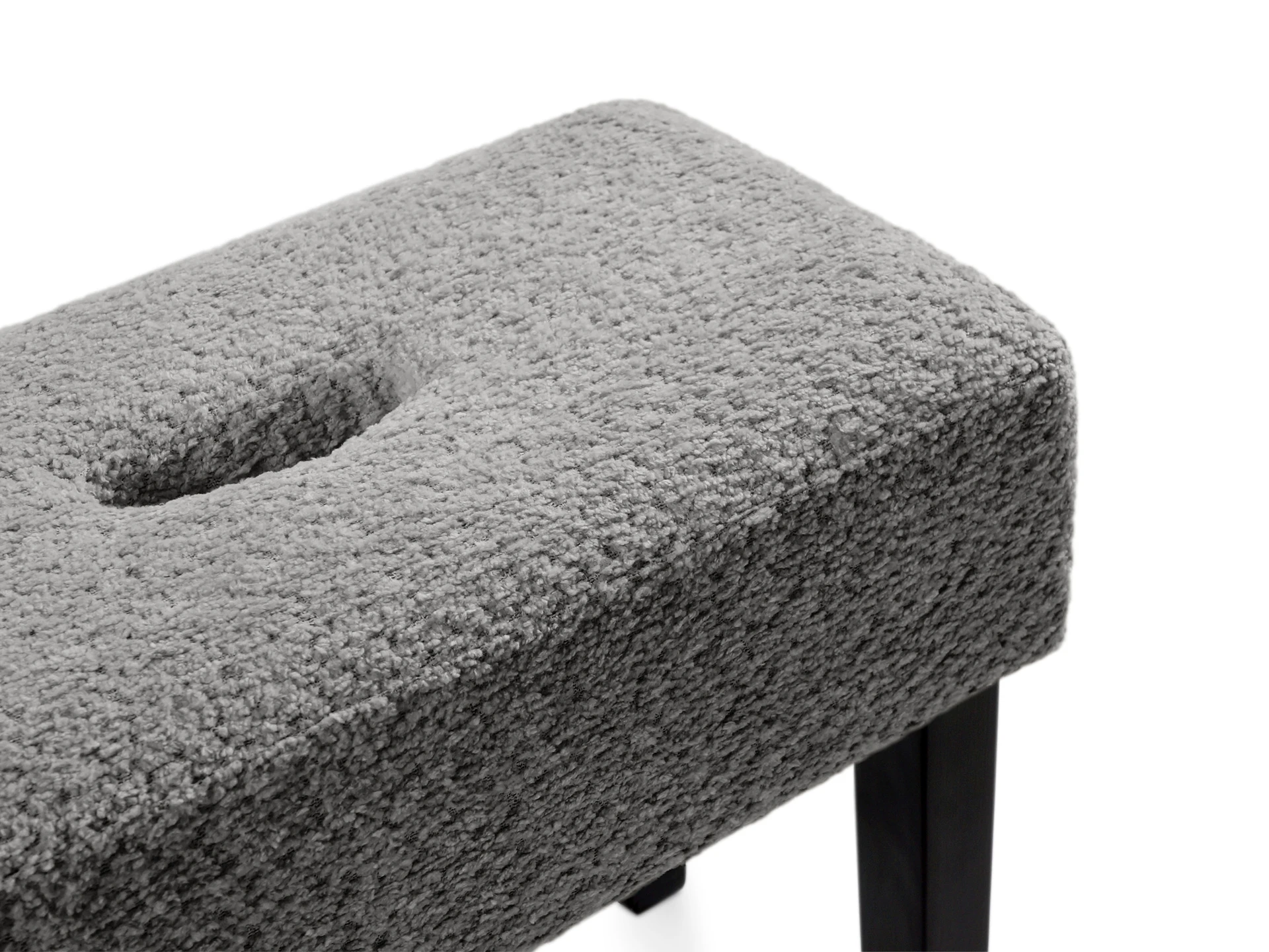 Табурет мягкий. Благодаря отверстию в верхней части табурет легко перемещать. Можно использовать под ноги, которые устают в течение рабочего дня или поставить в коридоре для удобства при обувании.