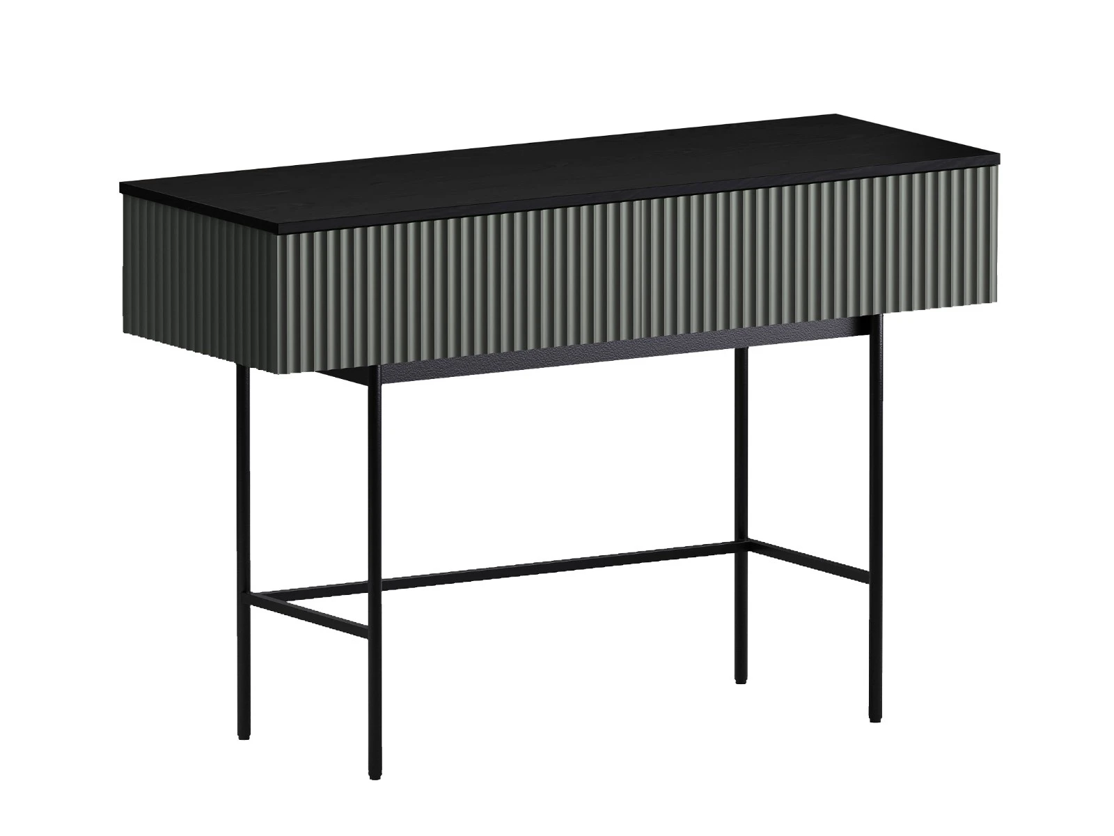 Коллекция Mikko — комплексная система хранения, разработанная для комфортного и актуального интерьера. Вы можете комбинировать различные предметы коллекции или использовать их отдельно. Лаконичный и выразительный внешний вид шкафов, тумб, сервантов, комодов стильно дружит с разными интерьерными решениями. Идея дизайна — баланс индустриального характера и органичных элементов. Мебель сочетает в себе прочное металлическое основание, крышку с дубовым шпоном и рельефный фасад с фрезеровкой. Дверцы и ящики открываются легким нажатием. Отсутствие фурнитуры придает моделям аккуратность и ритмичность. Используйте их для хранения книг, техники в гостиной, одежды и текстиля в спальне, важных мелочей в прихожей, документов и канцелярии в рабочей зоне, декоративных вещей в творческой локации. Можете выбрать цвет крышки: светлый или темный. С мебелью Mikko вы грамотно спрячете лишнее и эстетично экспонируете нужное. Стол консольный Mikko установлен на высокое металлическое основание черного цвета, стойки которого выполнены из круглой трубы d 20 мм, верхний пояс царг аналогичен остальным изделиям, а нижний пояс из квадратной трубы 15*15 мм. В столе два ящика на скрытых направляющих. Скрытые направляющие INNER Push-open (нажал-открыл) - МакМарт. Дно ящиков – ДВПО 3,2 мм. Основание металлическое, окрашено черной эмалью, высотой 600 мм, с пластиковыми регулируемыми подпятниками. Стол консольный рекомендуется крепить к стене для защиты от опрокидывания (крепежи входят в комплект). Фасад и боковые стенки коллекции Mikko с фрезеровкой выполнены из МДФ толщиной 18 мм. в четырех вариантах декоров: Софт Сантьяго, Шарли Терракота, Шарли Грин, Графит. Крышка из МДФ толщиной 16 мм., облицованной строганным шпоном дуба. Остальные детали корпусов выполнены из плиты ламинированной толщиной 16 мм., декор белый гладкий. Лицевая фурнитура отсутствует, открывание фасадов по принципу нажал - открыл.