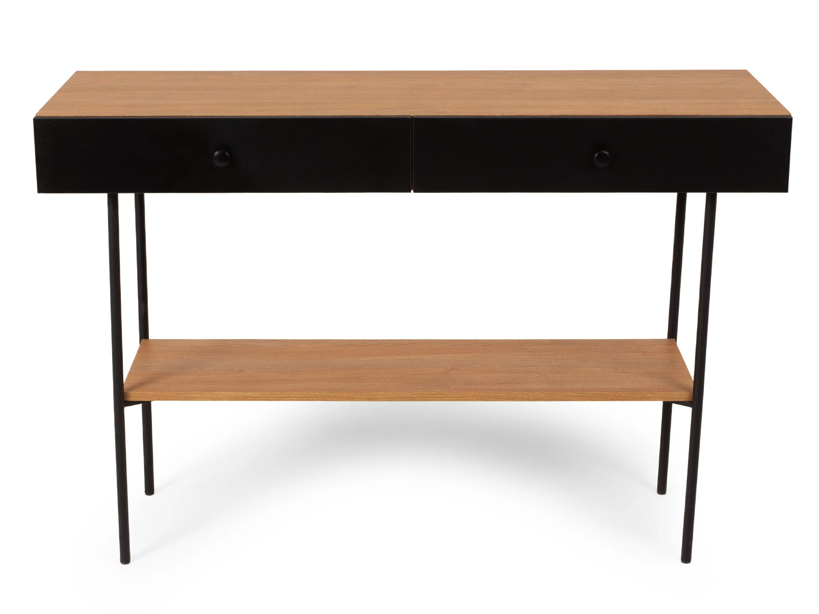 Корпусная мебель, с которой можно составить множество решений для гостиной, детской, кухни, спальни, прихожей, рабочей зоны. Комоды, шкафы, тумбы, столы, витрины, полки, серванты характеризуются универсальностью, многозадачностью, надёжными устойчивыми конструкциями. Имеют выразительный внешний вид, вдохновленный направлением ретро. Смотрятся легко и воздушно за счет деревянных ножек, минимального количества декоративных элементов, спокойных природных оттенков. Их можно использовать в качестве систем хранения, элементов для зонирования, фокусных точек. В дизайне ярко выражена доминанта прямых форм, графичности, лаконичных линий и элегантного исполнения. Что даёт пространству ощущение размеренности, сбалансированности, упорядоченности. Подходят интерьерам как с нейтральной базой, так и локациям с интенсивными цветовыми блоками. Индивидуальности добавят модели с оригинальными паттернами на фасадах. Предметы коллекции Frida гармонично впишутся в эклектичные и стилизованные интерьеры. Стол консольный установлен на высокое металлическое основание окрашенное черной эмалью из круглой трубы d 20 мм. и высотой 674 мм, с пластиковыми подпятниками. В столе два ящика на скрытых направляющих. В нижней части основания установлена полка. Соединительная фурнитура – Hettich. Материалы корпуса и фасада – ЛДСтП толщиной 16 мм.. Стол консольный рекомендуется крепить к стене для защиты от опрокидывания (крепежи входят в комплект). Высота опор 160 мм.