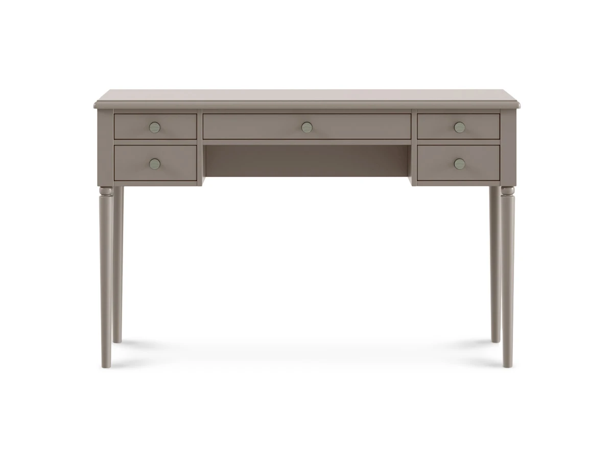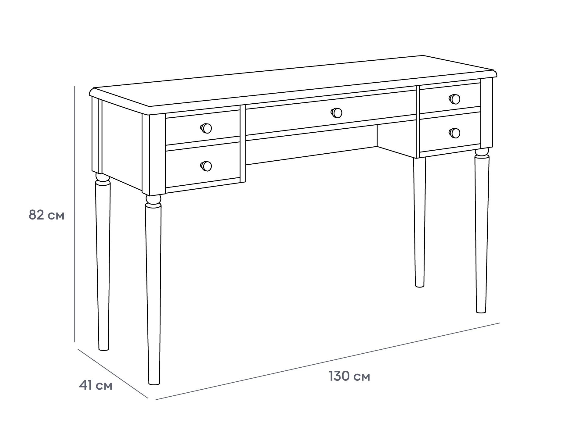 Коллекция Music — респектабельная мебель с классической основой. Обладает притягательной энергетикой изящных форм, поэтичного черного цвета и безупречным исполнением. Комоды, тумбы, банкетки, консольные и журнальные столики подходят для оформления гостиной, спальни, прихожей, мастерской, студии, бьюти-зоны. Идеально вписывается в стилистику неоклассики, арт-деко, минимализма, эклектики. Лейтмотив коллекции — барочные элементы: фигурные ножки из массива дерева, каретная стяжка «капитоне», акцентные детали в бронзовом и золотистом цвете. Изделия подчеркнут в интерьере смелость, выразительность, спокойствие. Они надежно сохранят ваши секреты, помогут разложить вещи по местам и поддержат настроение «тихой роскоши». Могут выступать на контрасте с главенствующим светлым оттенком или быть частью ненавязчивого темного фона. Туалетный столик с пятью выдвижными ящиками. Столик необходимо крепить к стене. Ручки включены в стоимость. RAL DESIGN 080 60 05 Gloss 20 «Серая фланель».