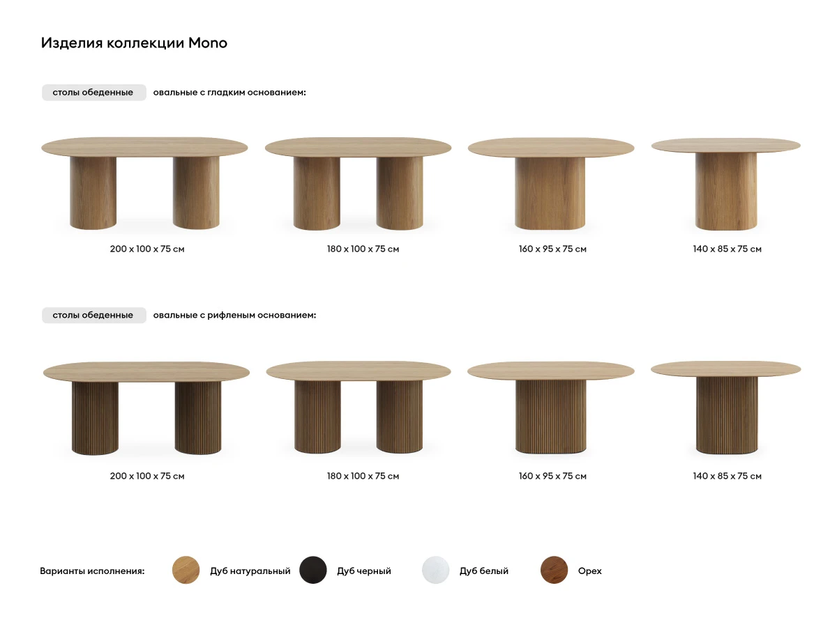 Дополнительная информация по мебели — Стол обеденный овальный Mono 200х100