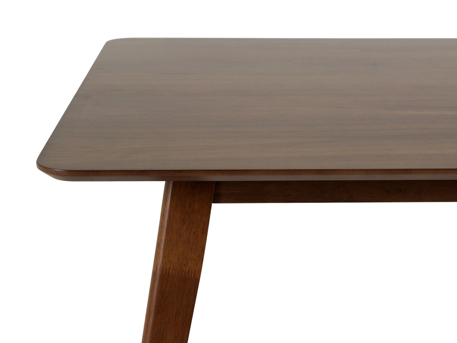 Стол обеденный Violet — выразительная комбинация природной эстетики и осязаемого комфорта. В основе дизайна – динамичные линии, которые формируют простой и сдержанный силуэт. Прямоугольную столешницу из МДФ с шпоном ореха поддерживают 4 ножки из цельной каучуковой древесины. Натуральные материалы обладают высокой прочностью и красивой текстурой. Естественный узор из прожилок привлекает внимание, подчеркивая стремление интерьера к экологичности. Деревянный стол станет центром вашей кухни, обеденной зоны, привнесёт ноту уюта, спокойствия. Плавный радиус углов делает его эргономичным и безопасным. Стол Violet превратит ежедневную рутину завтраков, обедов и ужинов в стильный ритуал, станет основой для ваших праздничных сервировок, поддержит тепло безмятежного времени в кругу семьи и друзей. Обеденный стол. Материал столешницы МДФ с шпоном ореха. Ножки изготовлены из цельного каучукового дерева. Толщина столешницы 1,8 см. Длина стола 150 см, ширина 90 см, высота 75 см. Размер упаковки: 156х95х11 см. Требуется сборка.