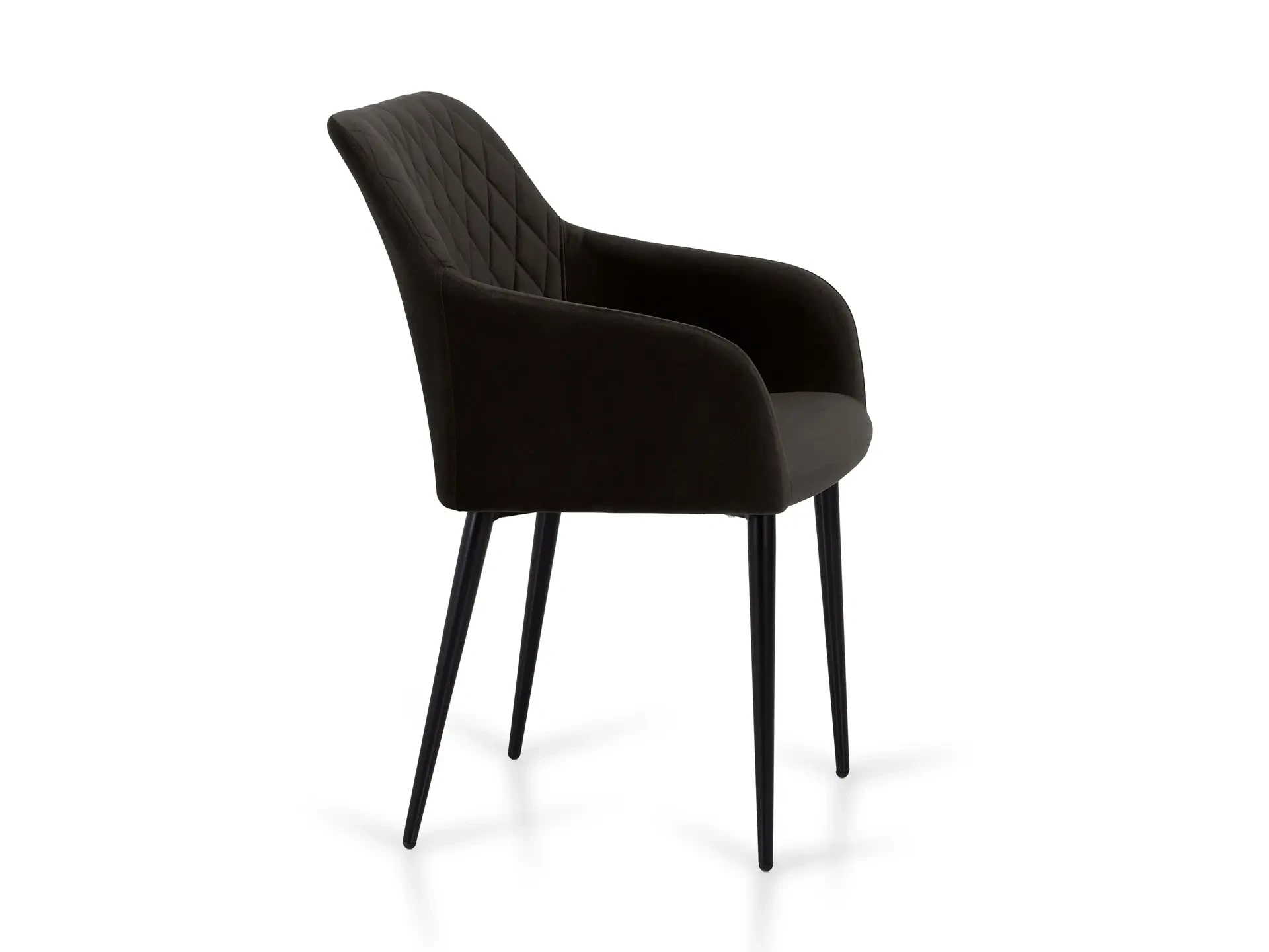 Роскошный и уютный стул в стиле арт-деко. Смотрится дорого, стильно и эффектно. Оно создано, чтобы очаровывать с первого взгляда. Плавные линии, изящные ножки, просторное сиденье и высокие подлокотники делают модель невероятно удобной для отдыха. Стильная отделка ромбом на спинке и сиденье в сочетании с благородным бархатом создает неповторимые переливы и придает стулу особую утонченность. Мягкий бархатистый велюр, высококачественный материал с повышенной износостойкостью. В качестве наполнителя используется литой (формованный) пенополиуретан высокой плотности. Металлические ножки черного матового цвета. На ножках предусмотрены специальные пластиковые накладки, которые придают стулу дополнительную устойчивость и защищают пол от царапин. Размер упаковки: 55*58*50 см. Требуется сборка.