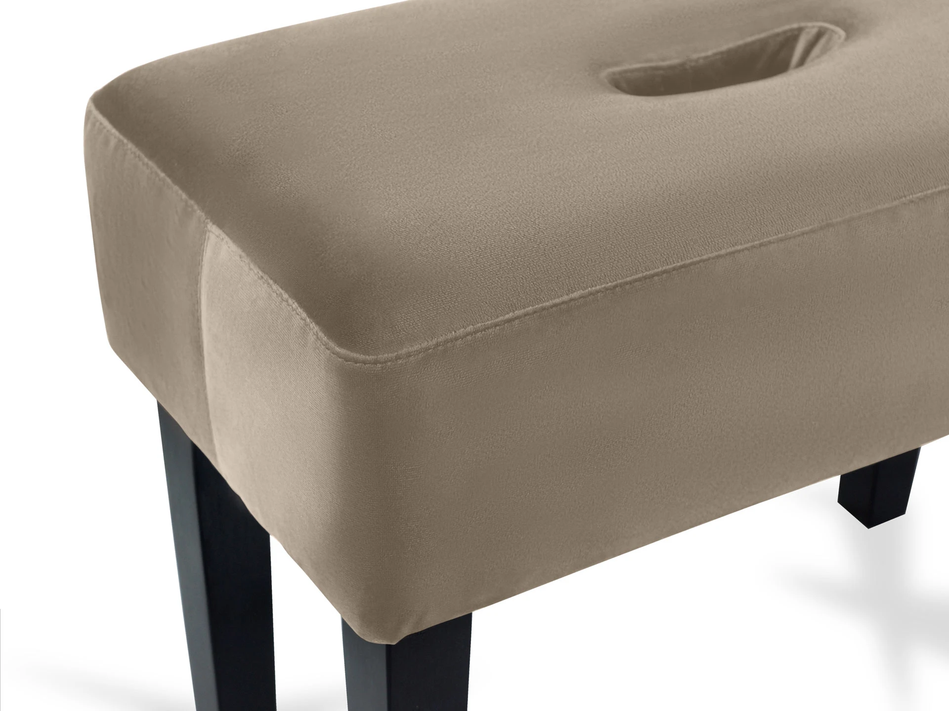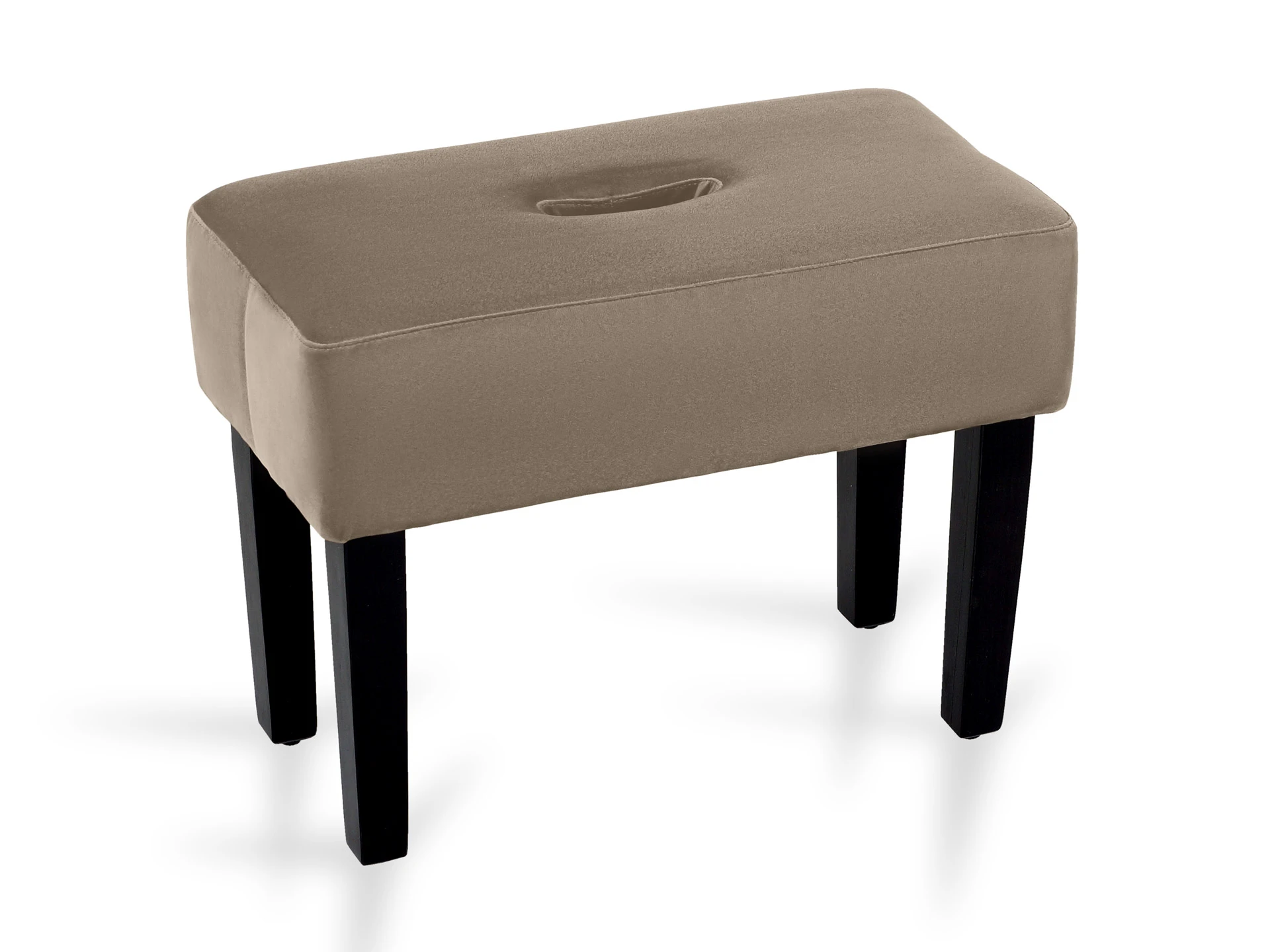 Табурет мягкий. Благодаря отверстию в верхней части табурет легко перемещать. Можно использовать под ноги, которые устают в течение рабочего дня или поставить в коридоре для удобства при обувании.