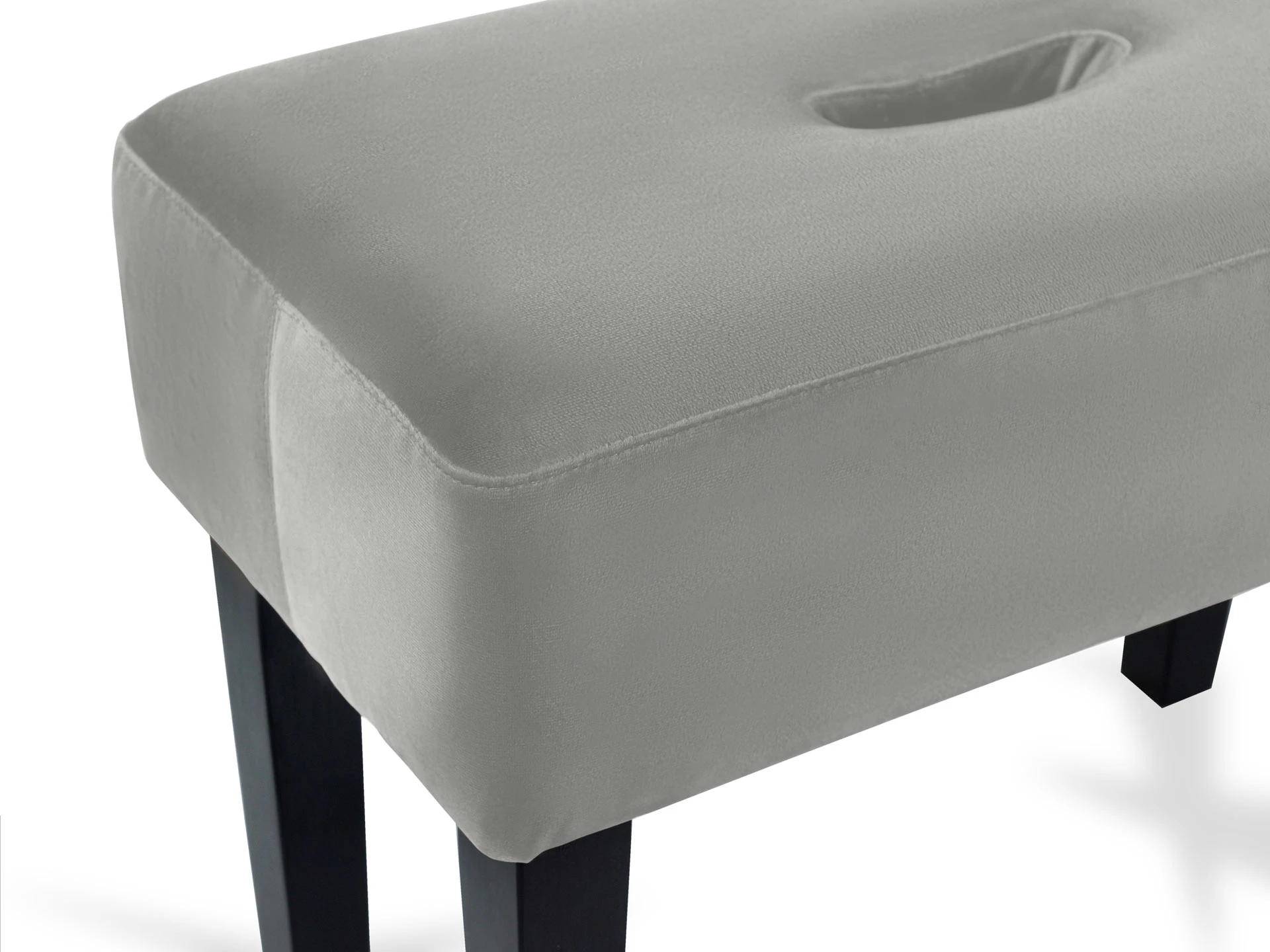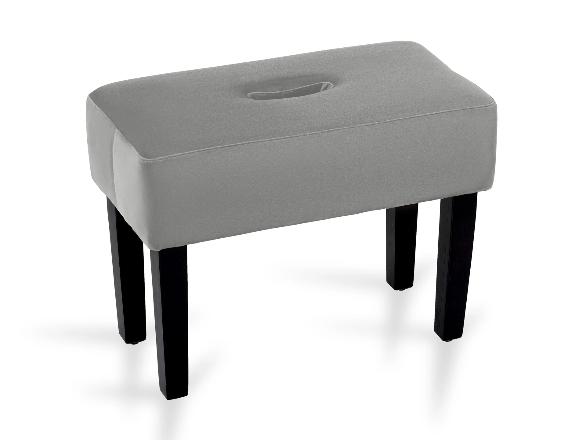 Табурет мягкий. Благодаря отверстию в верхней части табурет легко перемещать. Можно использовать под ноги, которые устают в течение рабочего дня или поставить в коридоре для удобства при обувании.