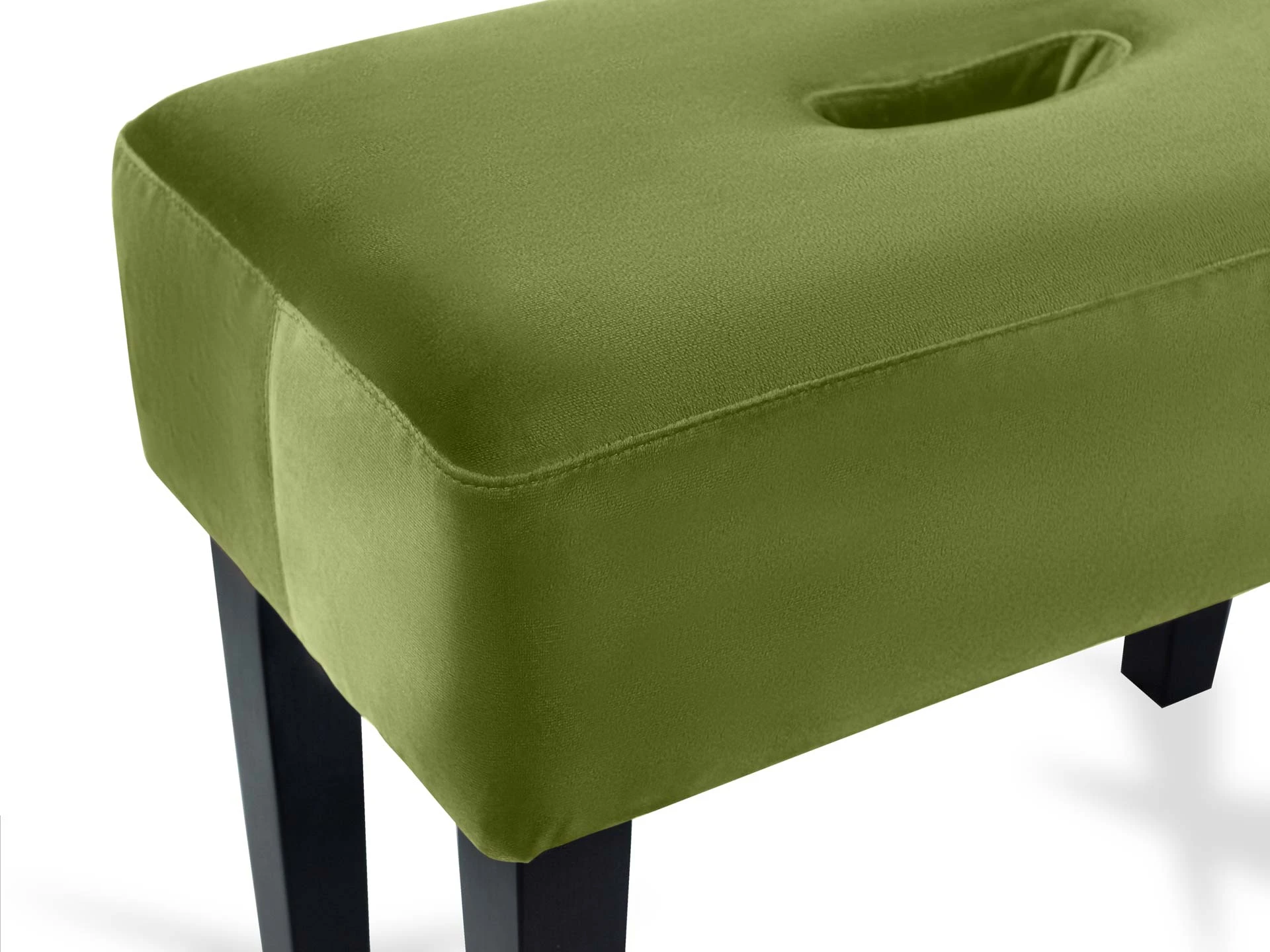 Табурет мягкий. Благодаря отверстию в верхней части табурет легко перемещать. Можно использовать под ноги, которые устают в течение рабочего дня или поставить в коридоре для удобства при обувании.